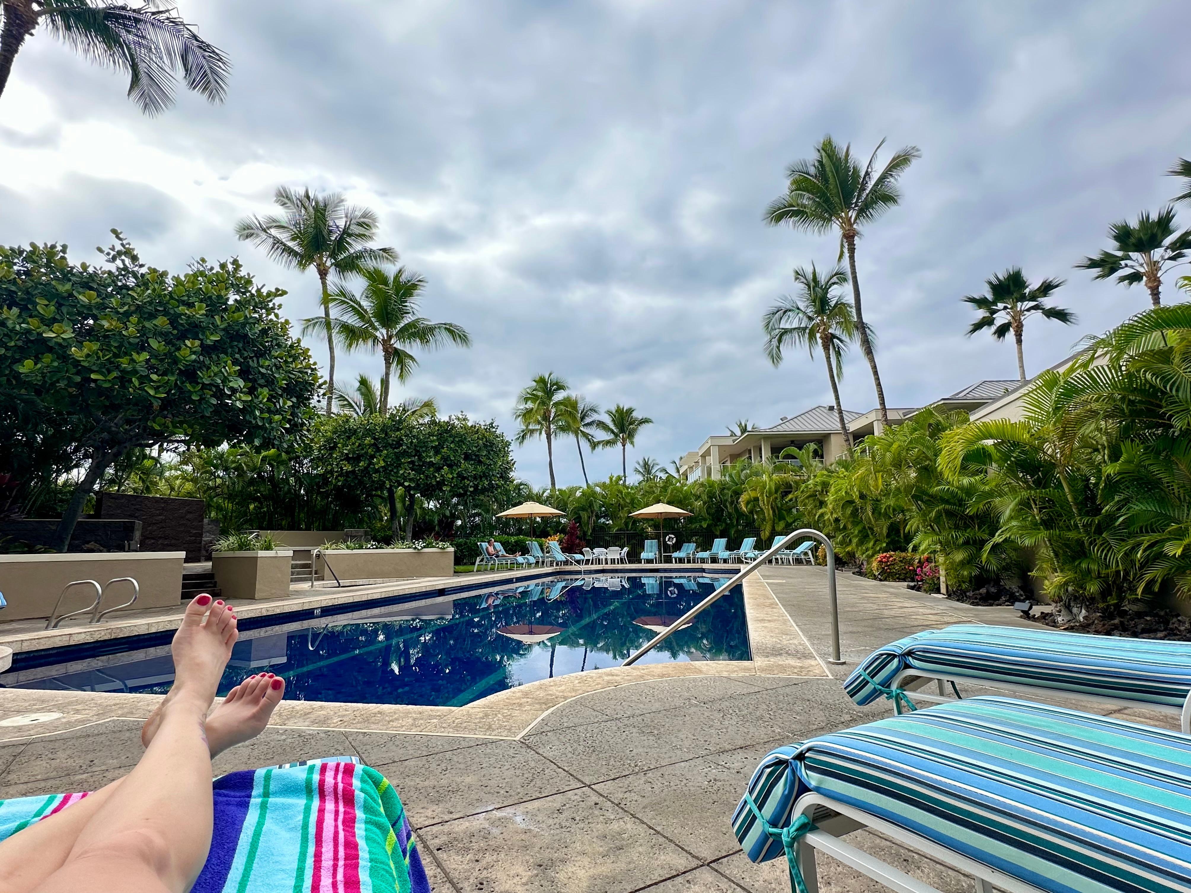 Beautiful ocean and sunset views! Enjoy this relaxing condo in a private gated community. This 2 bedroom, 2 bath condo has everything you may need or want: a fully equipped kitchen, resort style beds and bedding, and very comfortable furniture in the living area and on the lanai. Relax, enjoy the private wrap-around lanai, or the saltwater blue-tiled olympic sized pool & spas. BBQ downstairs and enjoy the beautiful sunsets with dinner on the lanai dining table. Centrally located on the Kohala Coast. Countless adventures await as you are close to many great beaches, the Kings & Queens Shops, golf, restaurants and so much more. Just 20 minutes north of the airport. The condo captures the aloha of the Big Island! All your snorkel and beach needs included!