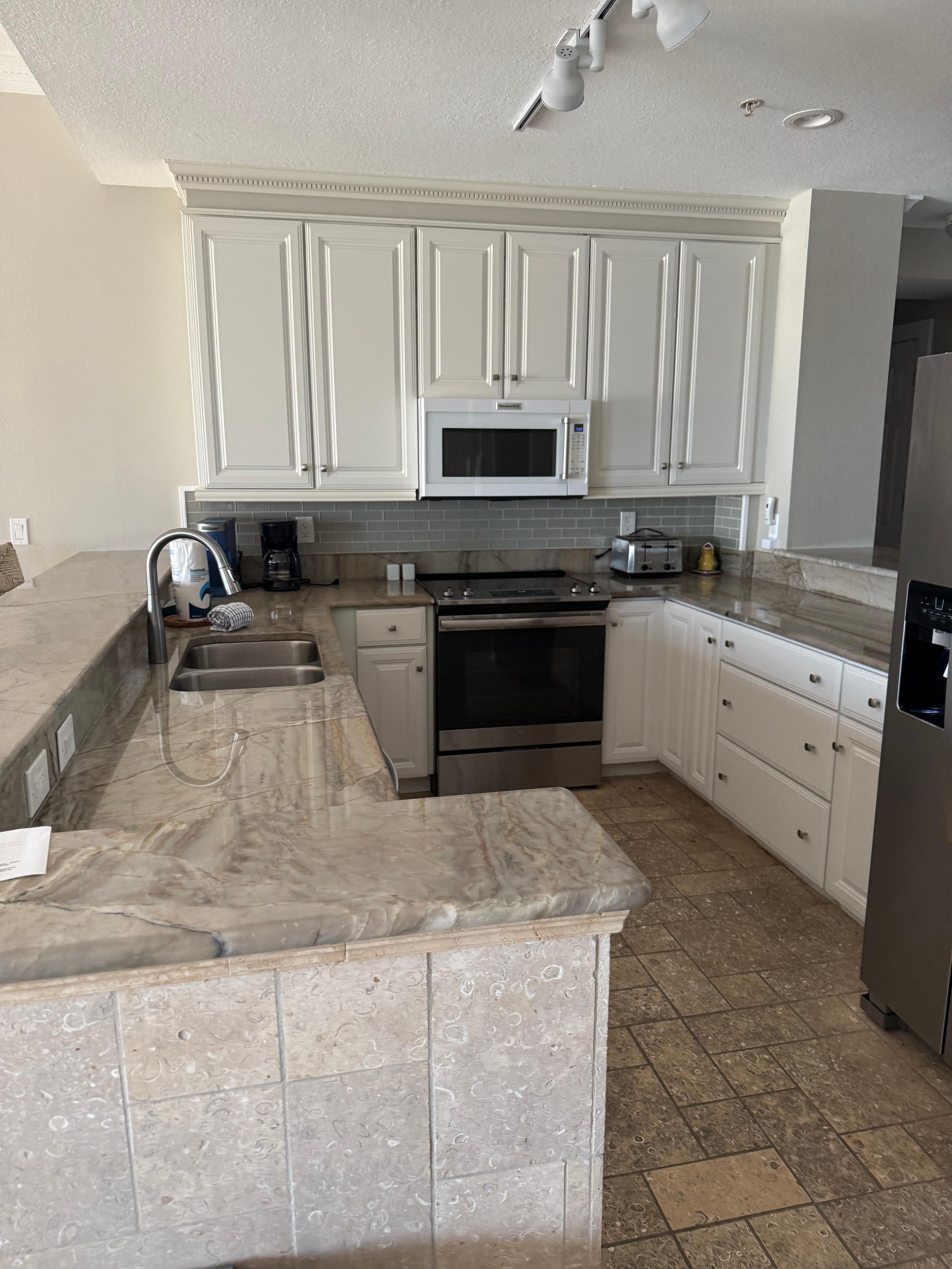 Inside, this air-conditioned penthouse offers an open floor plan that seamlessly combines all living spaces into one. Surprise your family and friends with delicious homemade treats prepared in the kitchen, well-equipped with stainless steel appliances and a Keurig. Once mealtime is over, gather in the welcoming living area to watch a favorite series on the smart TV (please note there is no cable). This condo also features a designated laundry room with a washer/dryer.