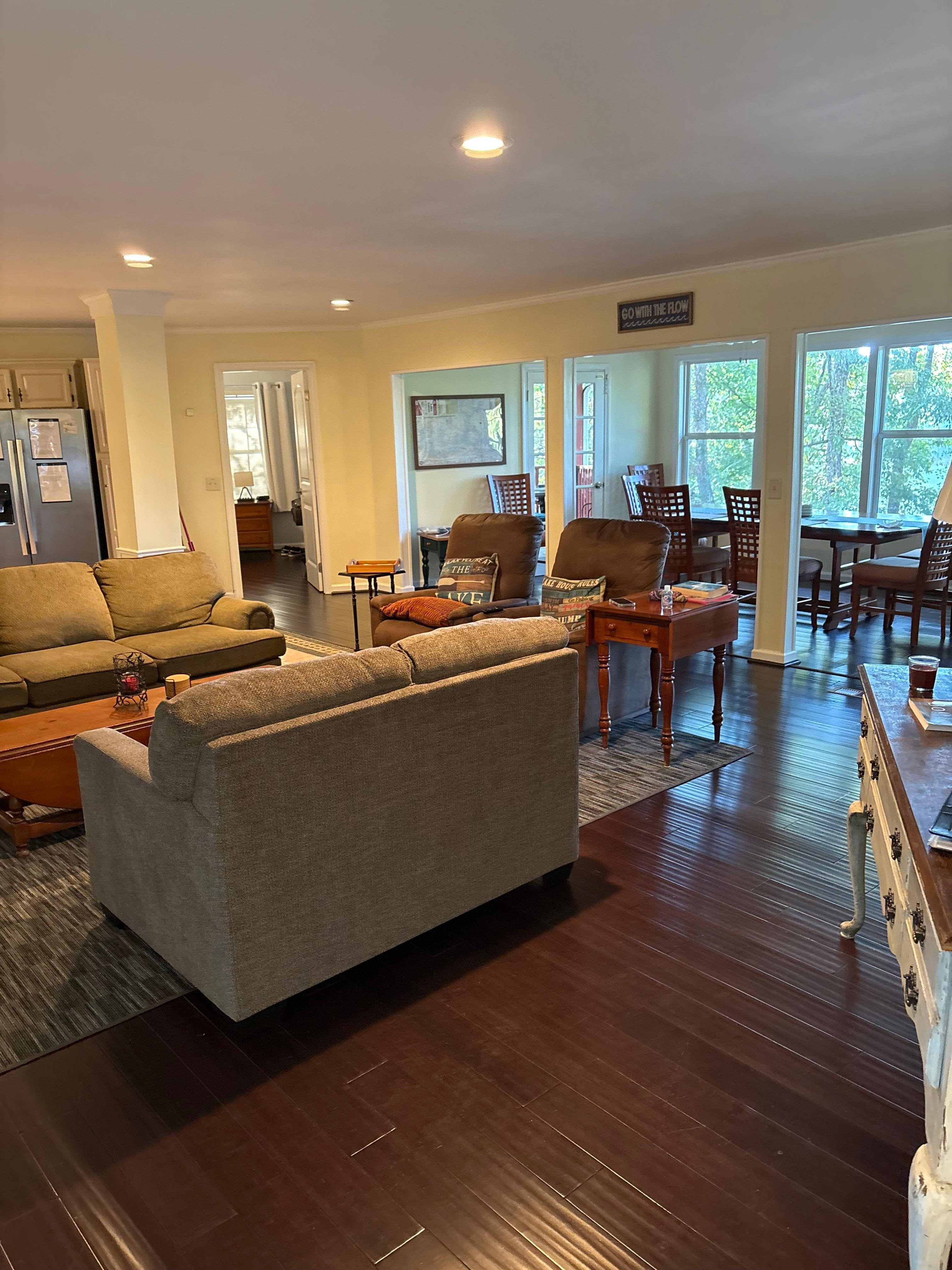Maximum 6 people. No exceptions. You can park your boat trailer at the top of the driveway and put it in the water at the nearby Balus Creek public boat ramp. Keep your boat (up to 25 foot) at our dock during your stay. Second slip has boat lift for pontoon and may be occupied by owner.