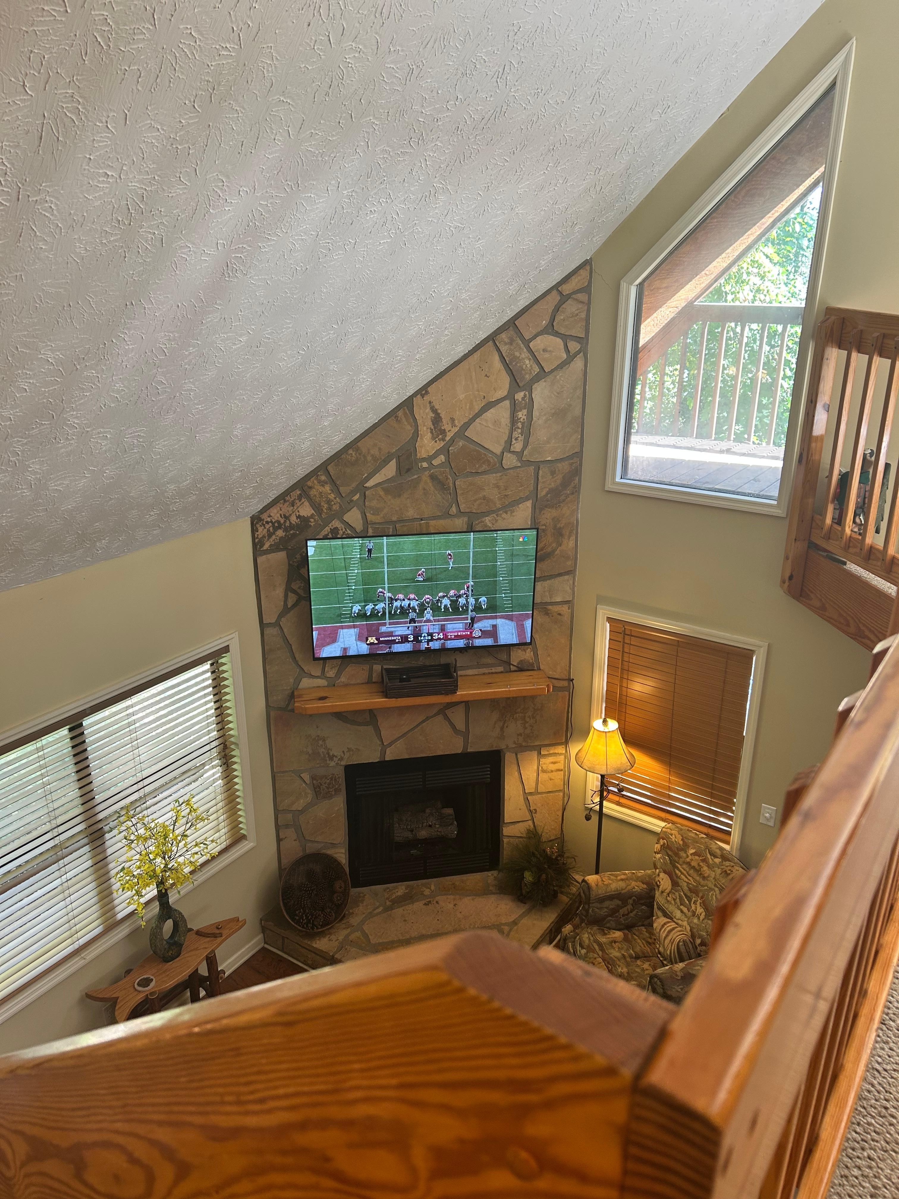 Escape to the Great Smoky Mountains and stay in our beautiful, centrally located cabin! Situated between Gatlinburg and Pigeon Forge, our two bedroom, two bathroom cabin comfortably sleeps six guests and is the perfect home base for your next mountain getaway.