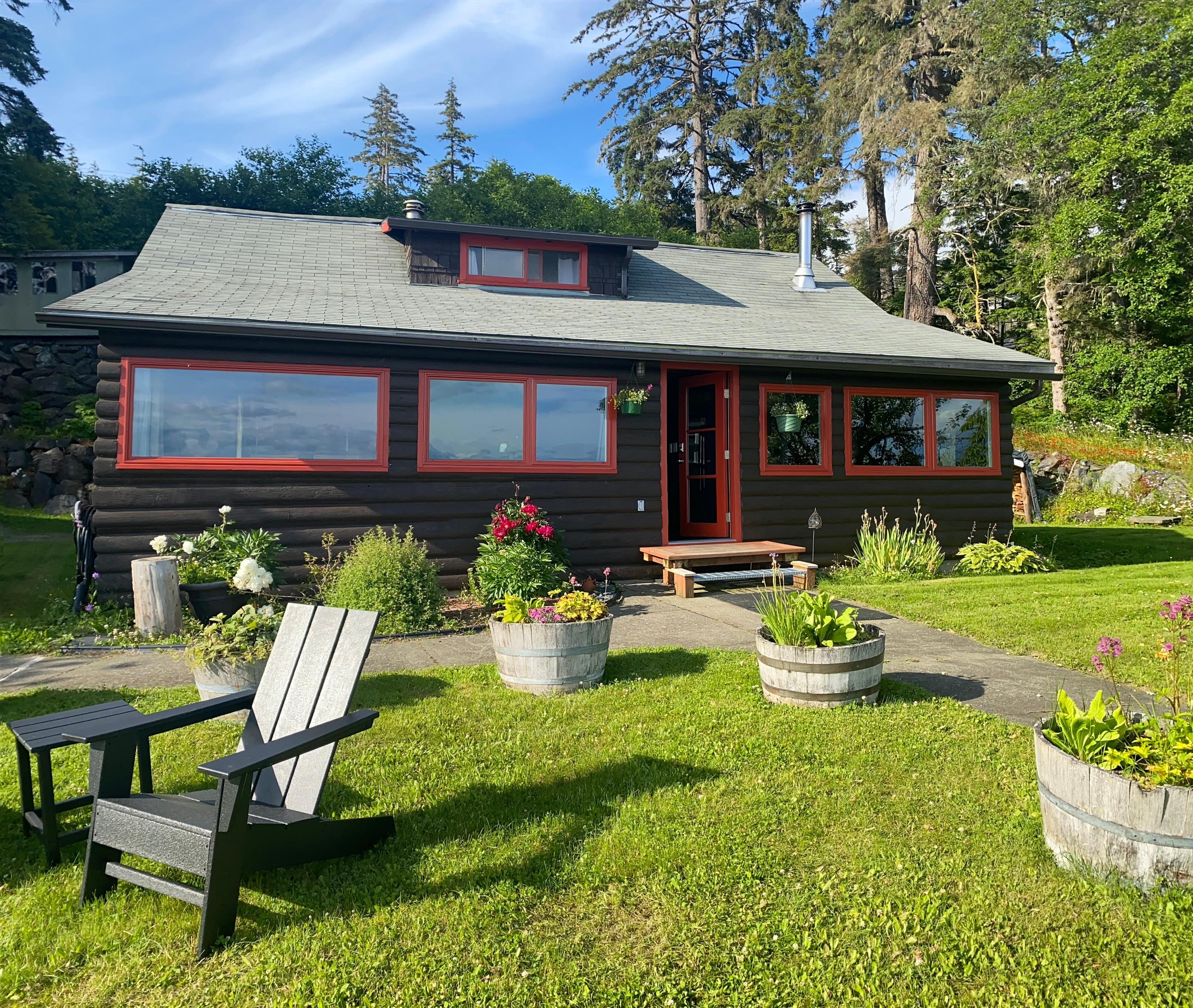 Unbeatable views. Beachfront cabin with southern exposure and lots of natural light is private, quiet, cozy. 1,400 sq. feet. 2BR. Second bedroom is expansive, enclosed upstairs loft. 1 bathroom with shower (no tub). Fully furnished. Washer/dryer. Bathroom fully remodeled and modern. Features: wifi, 42-inch TV, basic cable (can stream your own subscription services, Netflix, HBO Max, Hulu, Disney+, etc.), working wood stove, full kitchen, outdoor beachfront fire pit. Historic Alaska yellow cedar log homestead cabin is clean, cozy, warm, dry and full of character. Private driveway or street parking. Driveway is steep gravel; 4WD or AWD-wheel drive recommended but not required. With ocean and wildlife out front door this is a unique Alaska experience where you can often spot humpback whales, orca, sea lions, seals, bald eagles and other wildlife from the kitchen table. Located “out the road” with views of Lynn Canal, Admiralty Island and Shelter Island, a beach walk right outside the front door, a five-minute drive to Auke Bay food and nightlife and an easy 15-minute drive to Mendenhall Glacier, this is a perfect base camp for trails, mountain hikes, paddling and other adventures. Or just enjoy uninterrupted cabin tranquility. Three miles from Auke Bay ferry terminal, eight miles from Juneau airport, 16 miles from downtown Juneau.