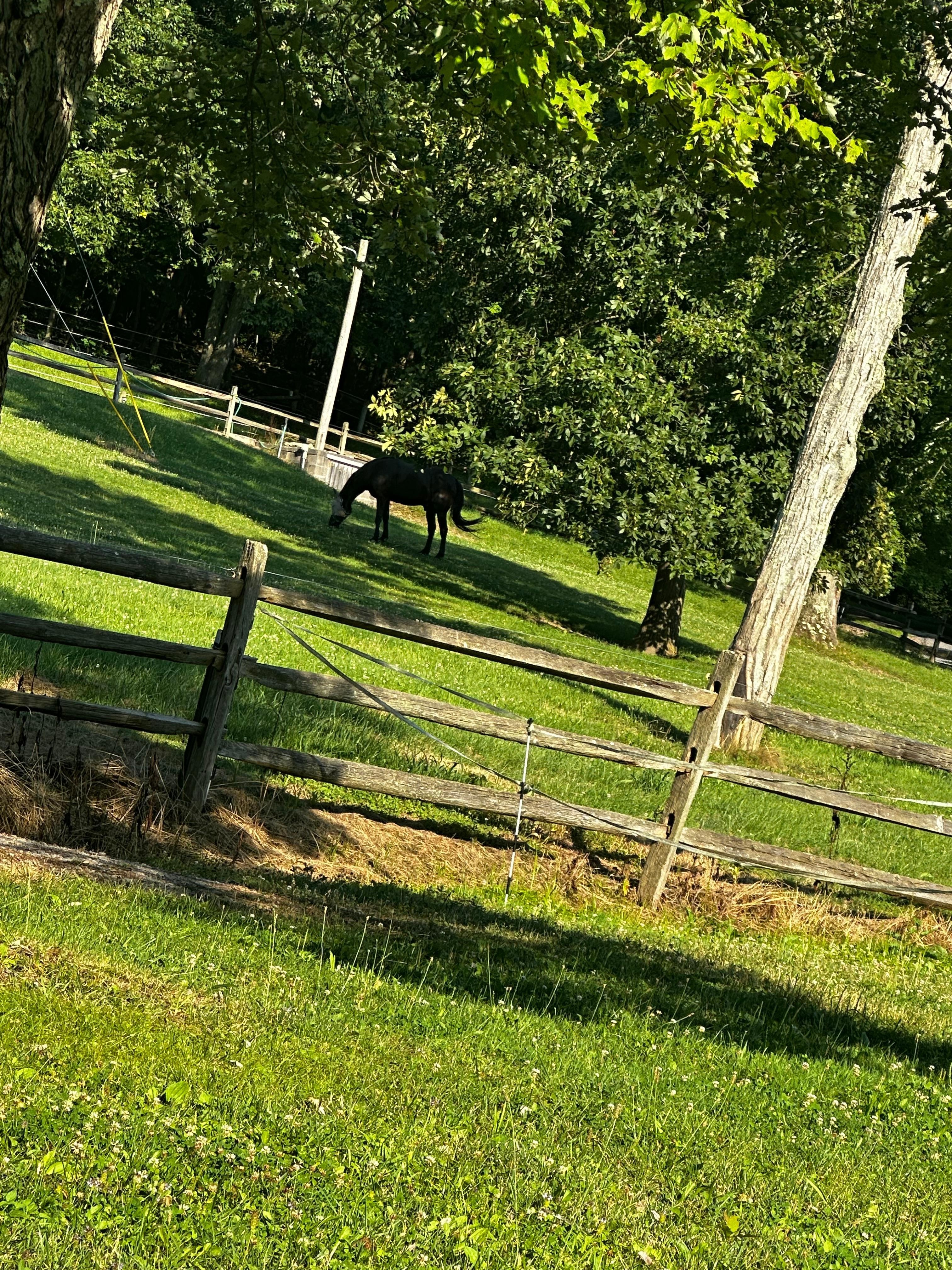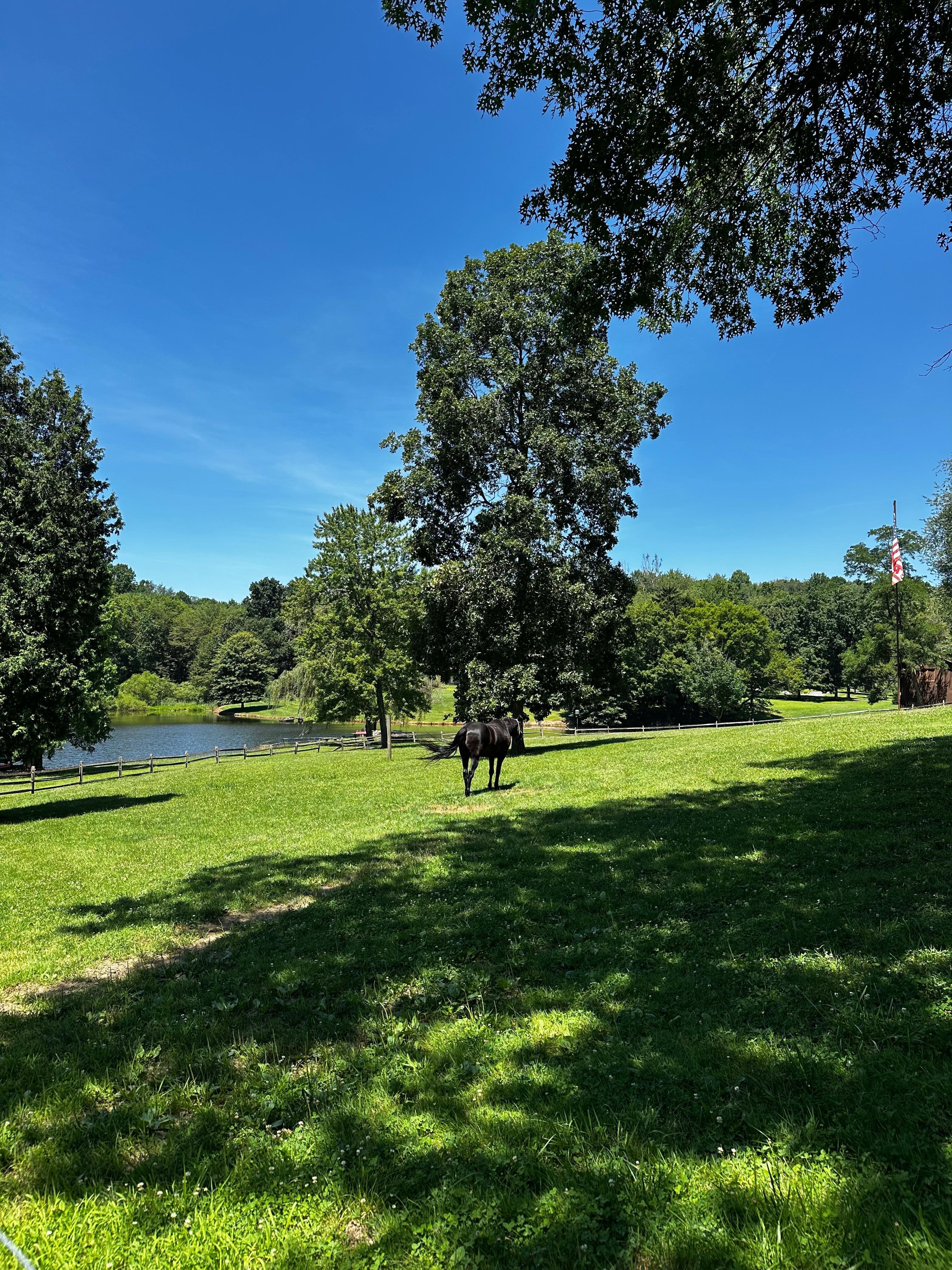 Lovely, peaceful and relaxing. Nature abounds! During our brief overnight stay, we saw deer, osprey, heron, an owl, grand-daddy bullfrogs, fish jumping in the lake, a pair of swans with their newly hatched cygnets, and of course, Midnight, the beautiful horse whose paddocks lie beneath and adjacent to the cottage.