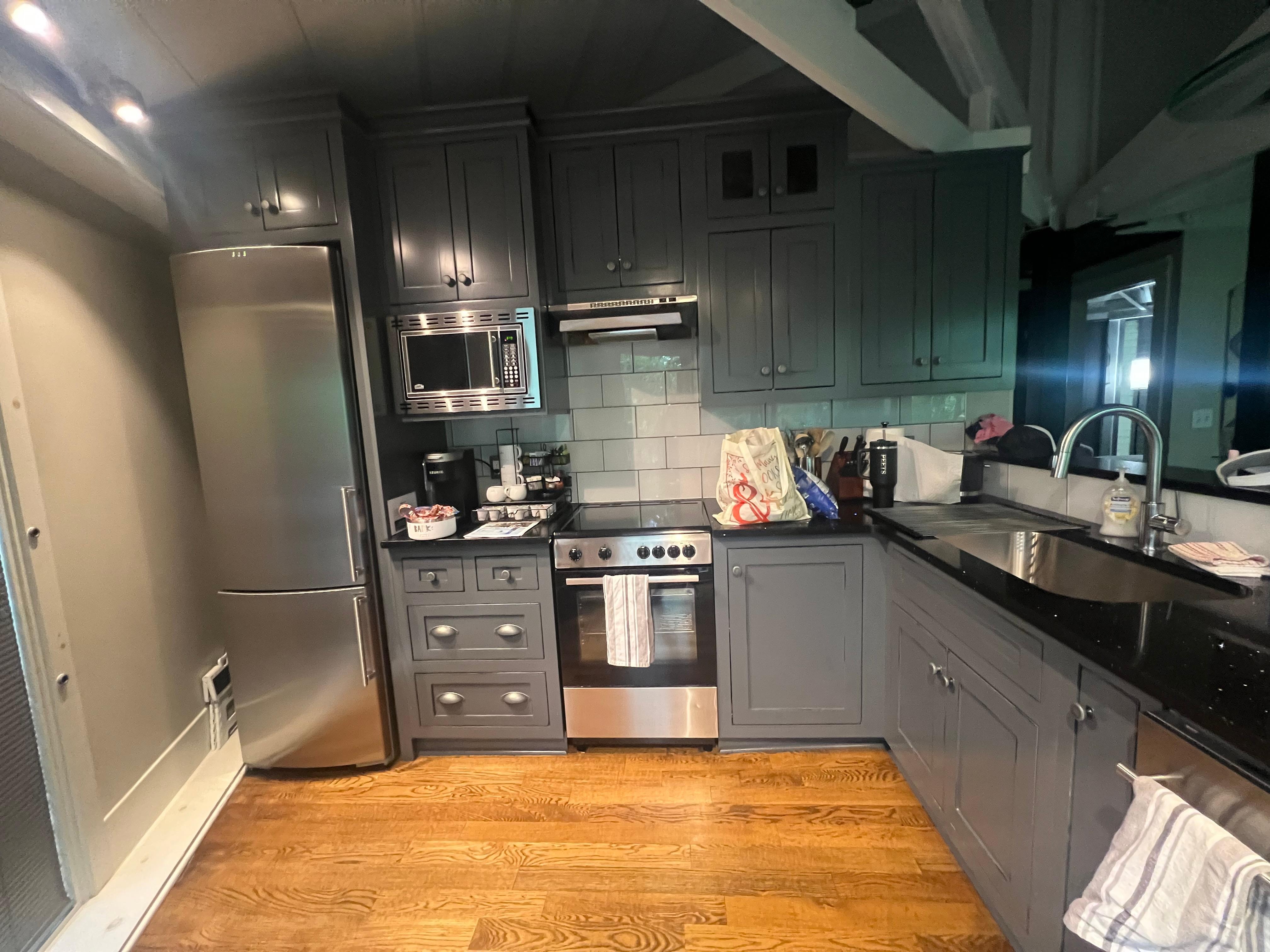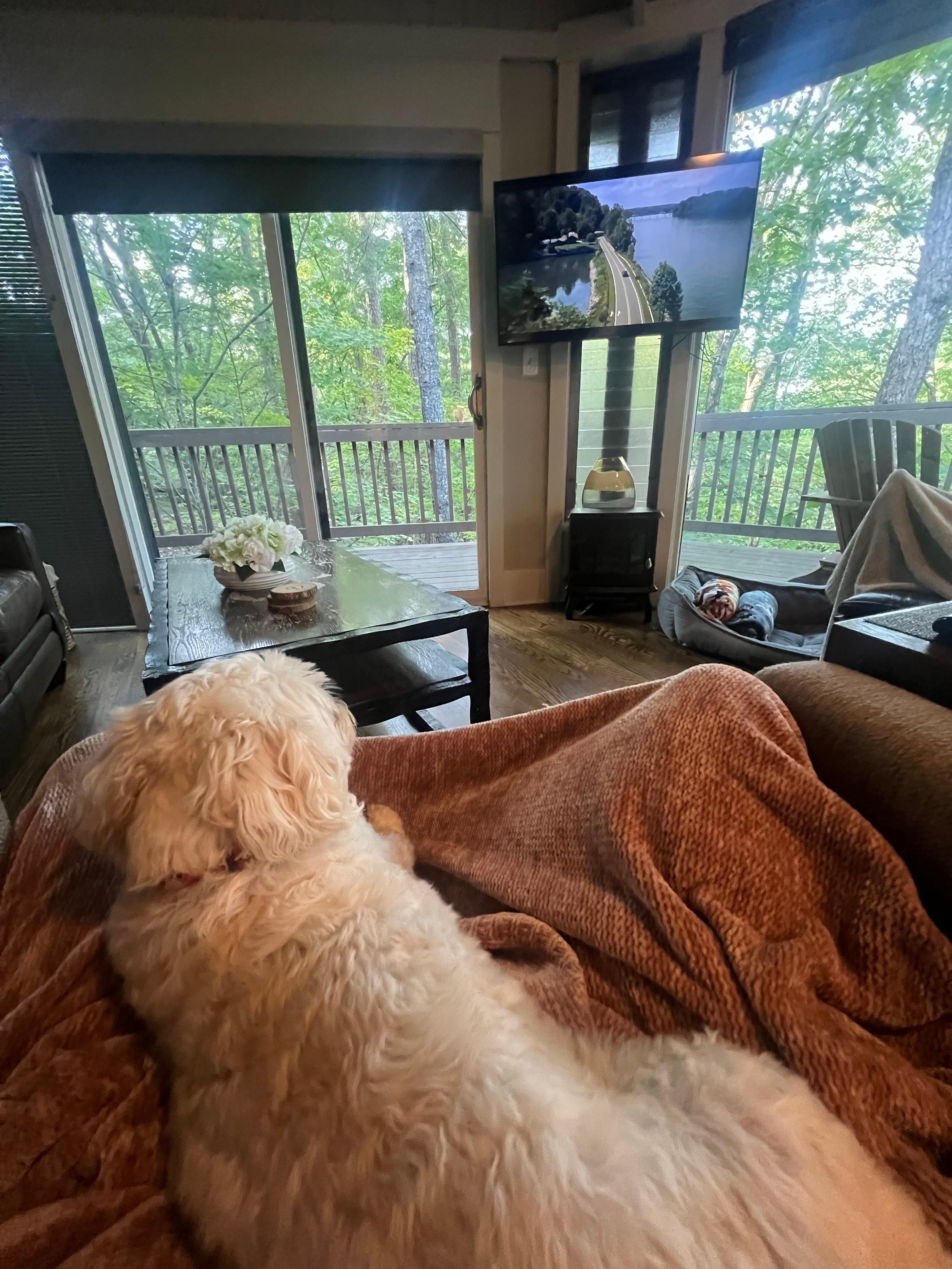 Situated only minutes away from fine dining and resort style amenities to compliment your mountain getaway. The home has two bedrooms and two full bathrooms. The master bedroom has a queen size bed and the second bedroom has a pull out double bed. The living area is decorated to provide the best possible views of the lake and surrounding trees. There is a full kitchen, which is stocked with pots and pans and everything you would need to cook a gourmet meal. Wi-Fi is available as well as three smart TVs (with Netflix, Hulu, Prime Video etc. available for guests to login with own accounts). Coffee, tea and bottled water are always stocked in the home for your convenience. The wraparound deck contains table, chairs and an electric grill for cooking out.