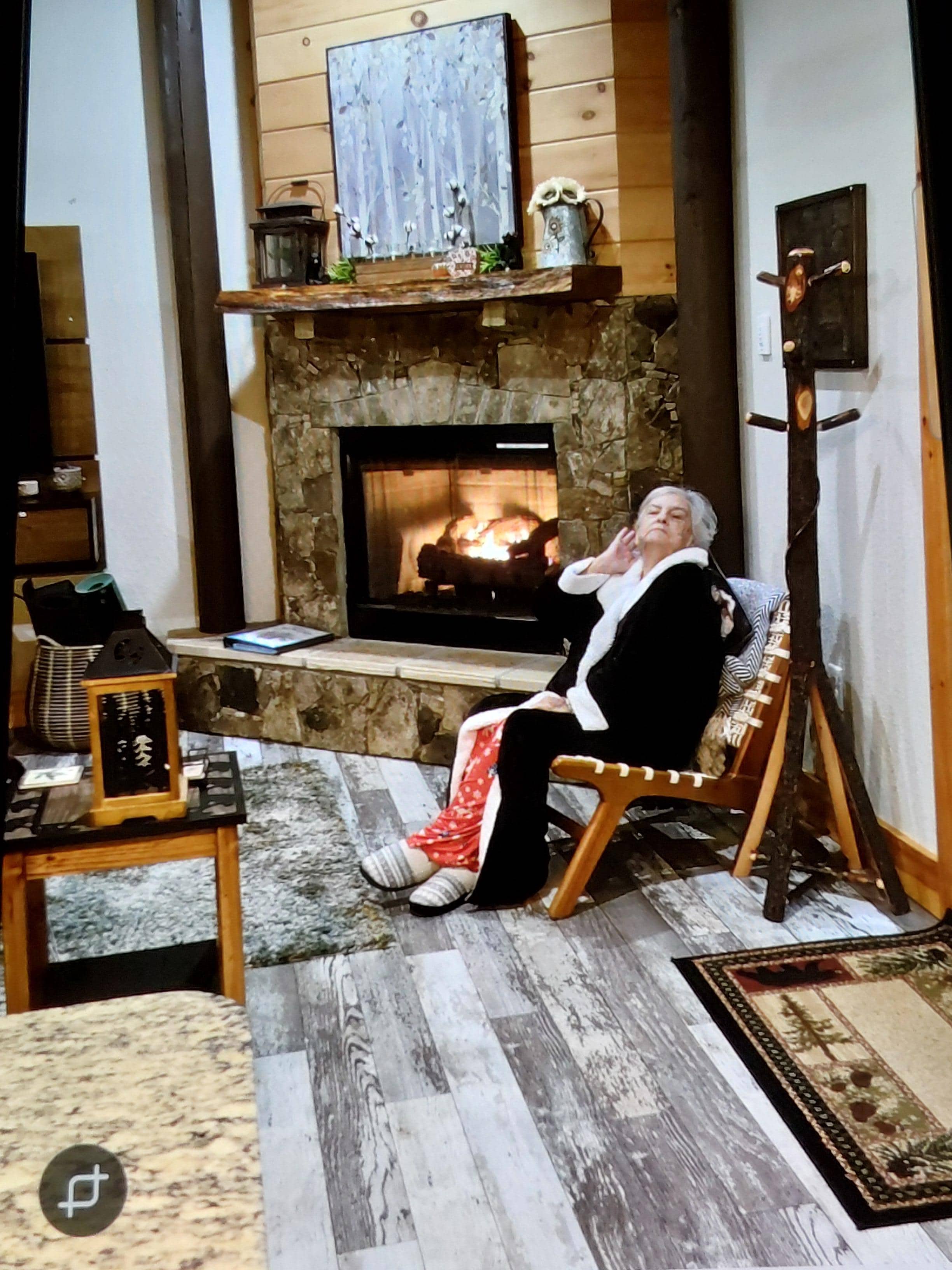 Nanta-Haven's one-level cabin boasts a charming rustic design and is equipped with a whole-house generator, ensuring uninterrupted comfort no matter the weather. The open floor plan features a spacious living area with a 65” HD Smart TV, a gas fireplace, and plenty of comfortable seating. The fully-equipped kitchen comes with stainless steel appliances and granite countertops, seamlessly flowing into a dining area that seats up to 8 guests. Whether you're cooking a meal or enjoying a cozy evening in, you'll find everything you need right at your fingertips.