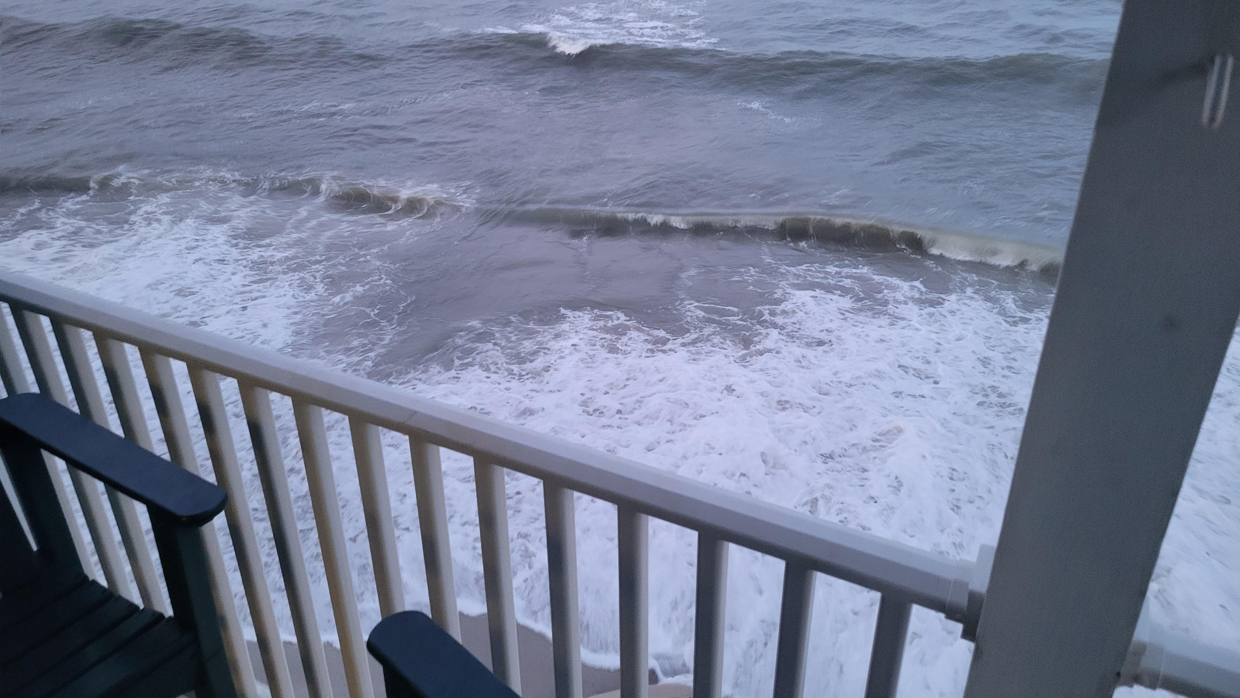 **In the Spring and Summer, the beach is typically very plentiful. In the Fall and Winter, we can get what are called “King Tides”. These are extremely high tides due to the moons position with the earth. They happen monthly for about 5-6 days. Combine that with strong NE winds and you will have very high tides which can cause lots of sand to be removed from the beach, exposing sandbags that are mostly covered in Summer. There is still room to walk the beach heading north from condo. The beach replenishes itself VERY fast afterwards, so conditions can change in a matter of days**
