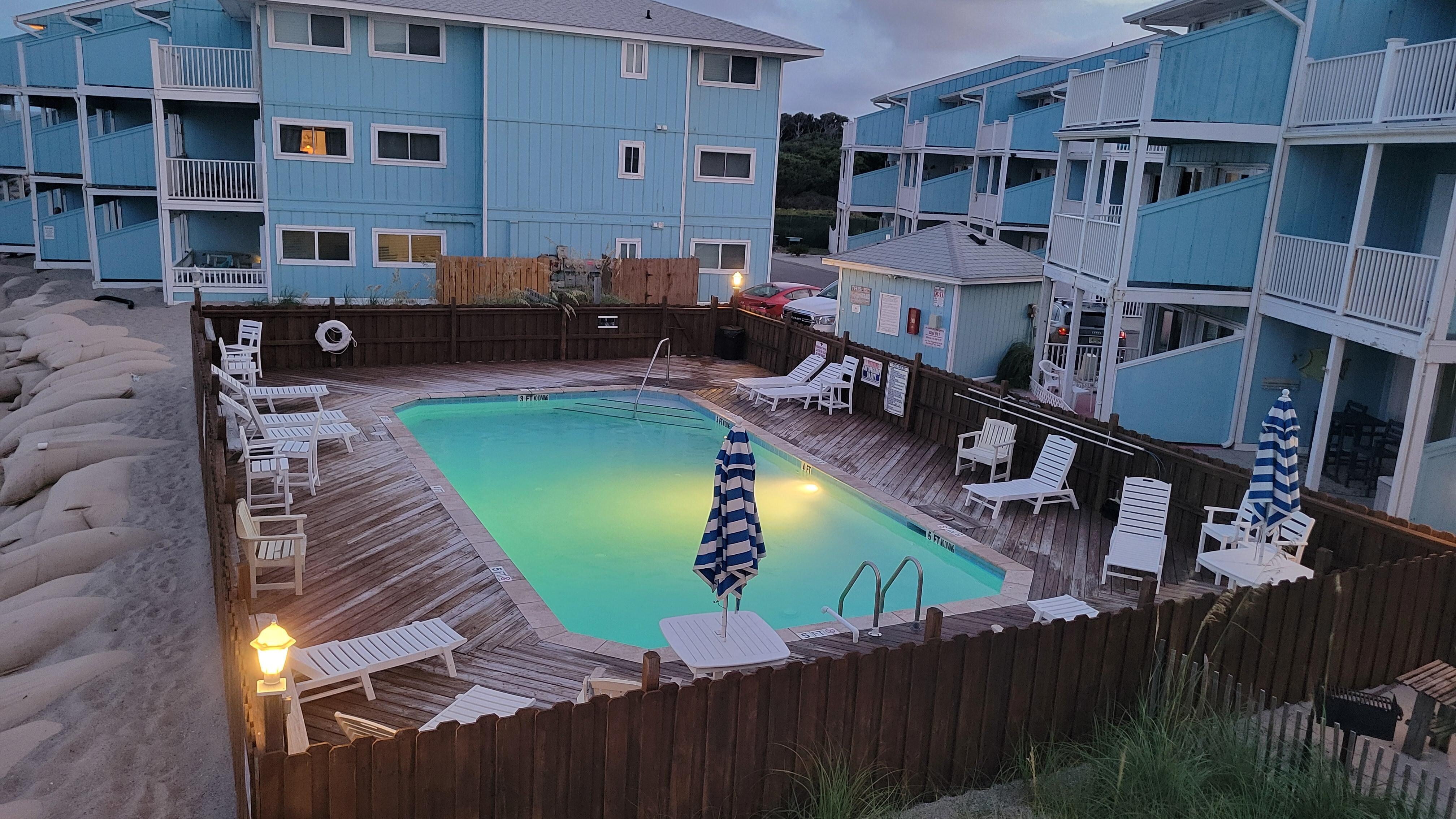 Second floor, end unit directly on the ocean with the BEST views you will find on the island! Watch the sunrise from your private balcony. Just steps away from the beach. 2 miles to Kure Beach pier, 2 miles to NC aquarium, 5 miles to Carolina Beach Boardwalk. This unit has one bedroom with a king bed and two twin bunk beds in the hallway. Full kitchen with microwave, dishwasher, Keurig machine (please bring k cups), toaster and all utensils, dishes and glasses. Unit has WiFi, Netflix and cable TV. TVs in living room and bedroom. Washer/dryer. We are stocked like a hotel with all linens and towels cleaned for you and ready before you arrive. We also are fully stocked with toilet paper, paper towels, hand soap, dish soap and laundry detergent.