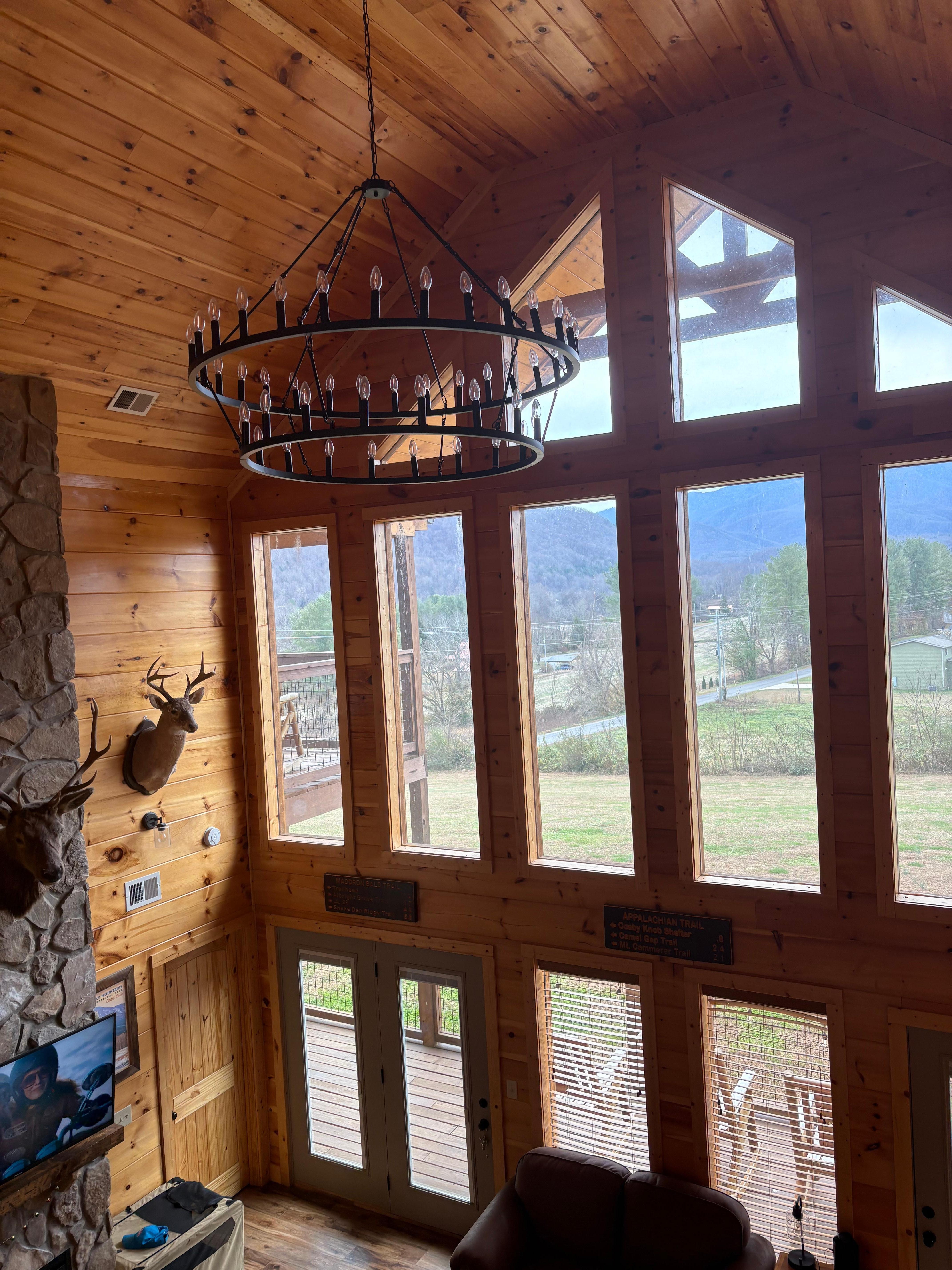 The pictures do not do this cabin justice. The views are spectacular! We have stayed in dozens of cabins over the years and this one tops the list. The outdoor space was absolutely perfect, from the parking to the porch to the firepit. The interior of the cabin is new, clean, and spacious. A bit of a drive from gaitlinburg and pigeon forge but the views make the drive worth it.