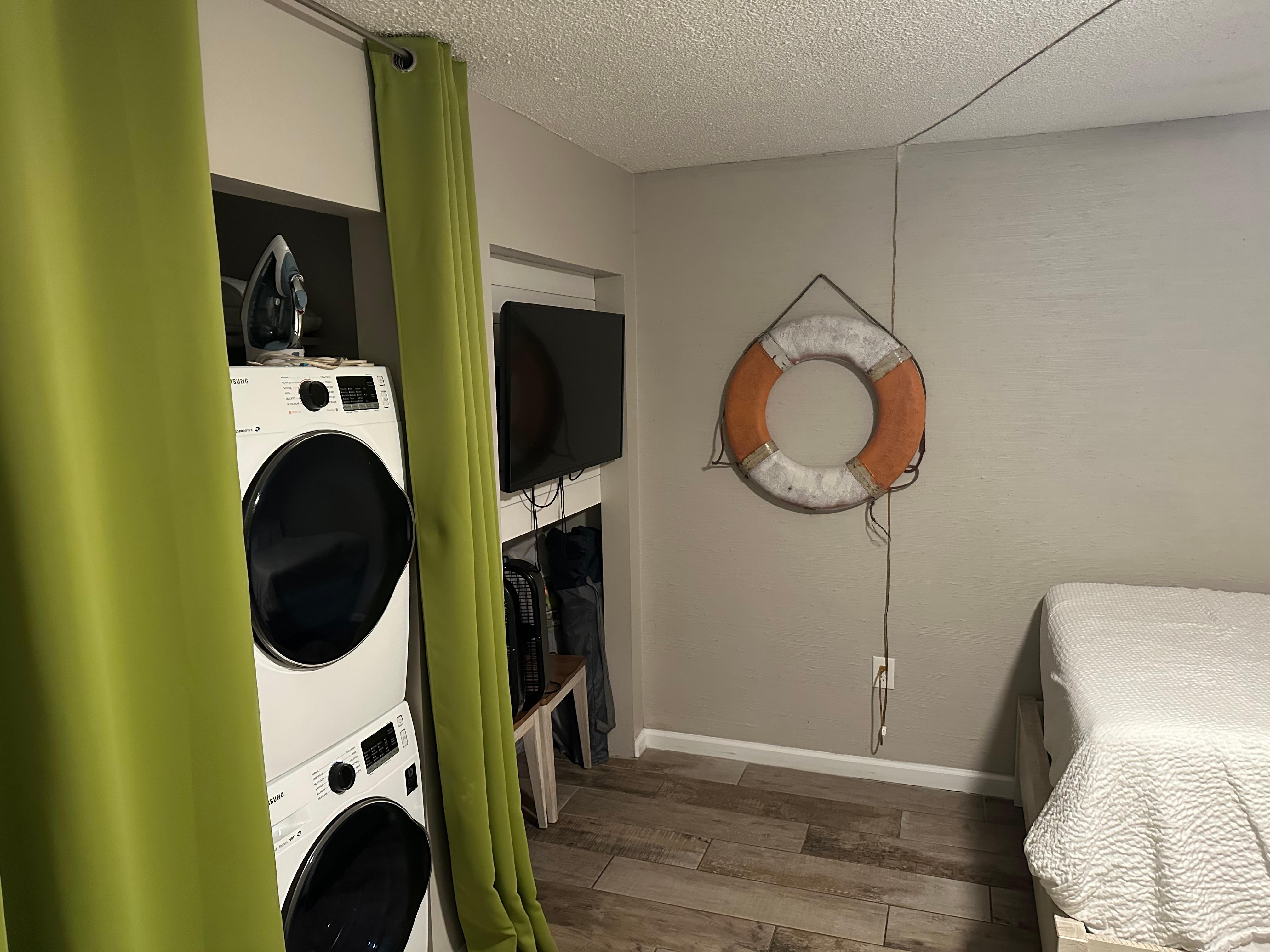 Additional amenities include complimentary WiFi, central air-conditioning, and a private washer/dryer.