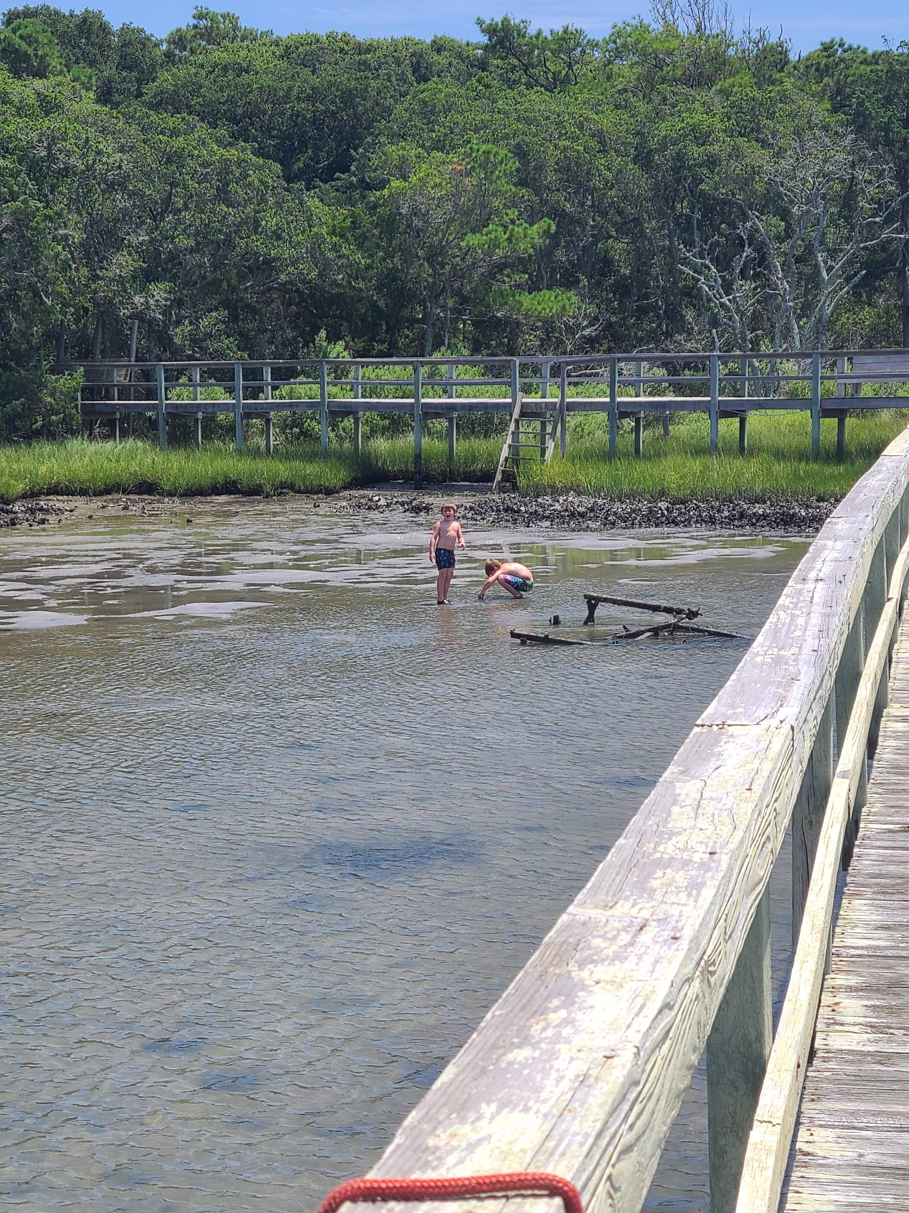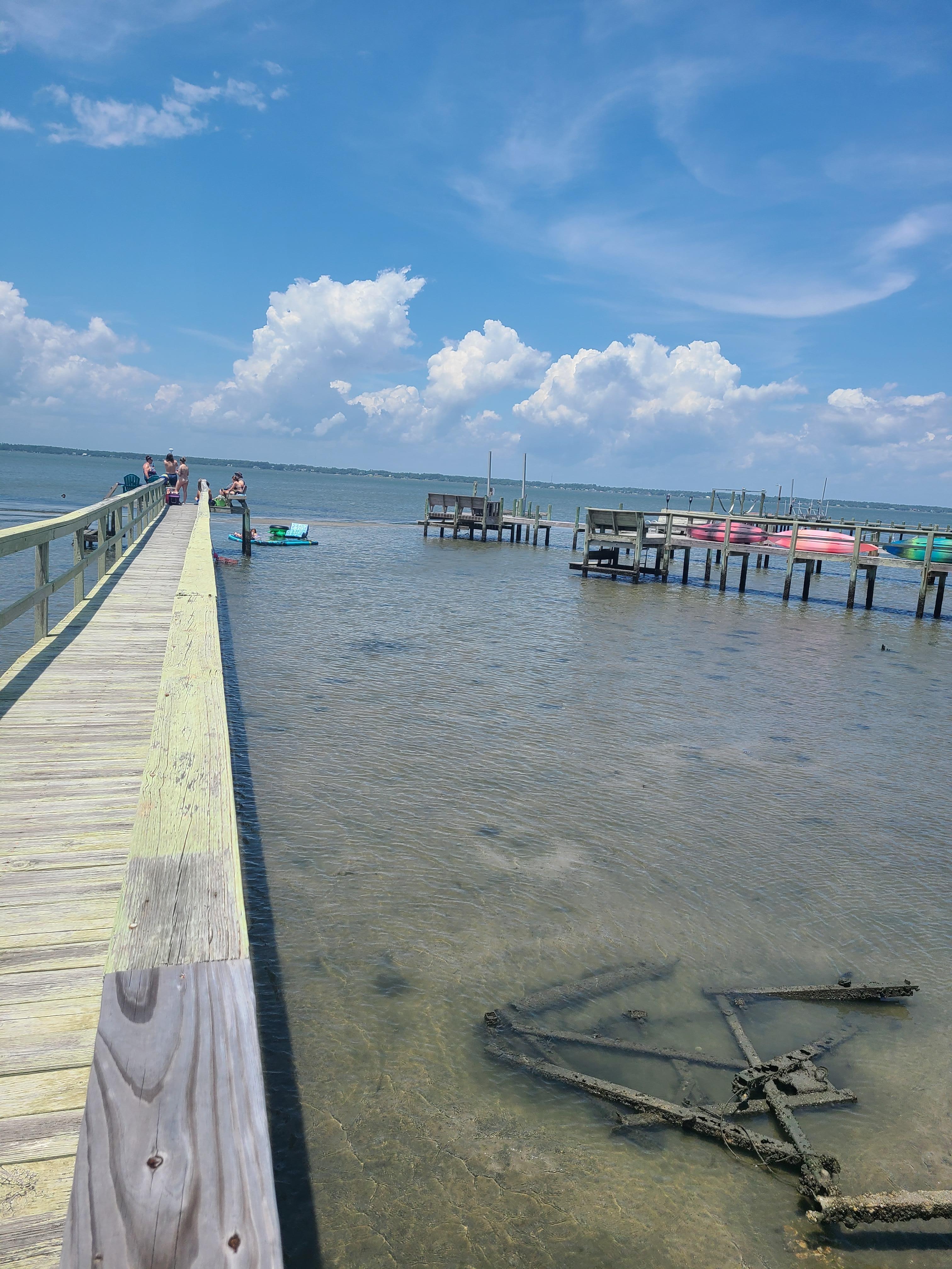 The home's private pier leads to the sound for fishing, clamming, sailing. It is too shallow for larger speedboats, and too much serious fishing - except maybe at high tide (3 ft max). (We do NOT provide any recreational vehicles......) There is a local marina just 1 mile away in Salter Path (Indian Beach) where you launch water vehicles....and a rental place for kayaks, jet skis etc.less than 2 miles away. The sound is shallow particularly during the summer but reaches 4 feet at high tide in the fall. - swimming, kayaking, safe for kids -"entertaining" fishing - small fish and mullet, or crabs...but you have the pier all to yourself with no competition from other folks!