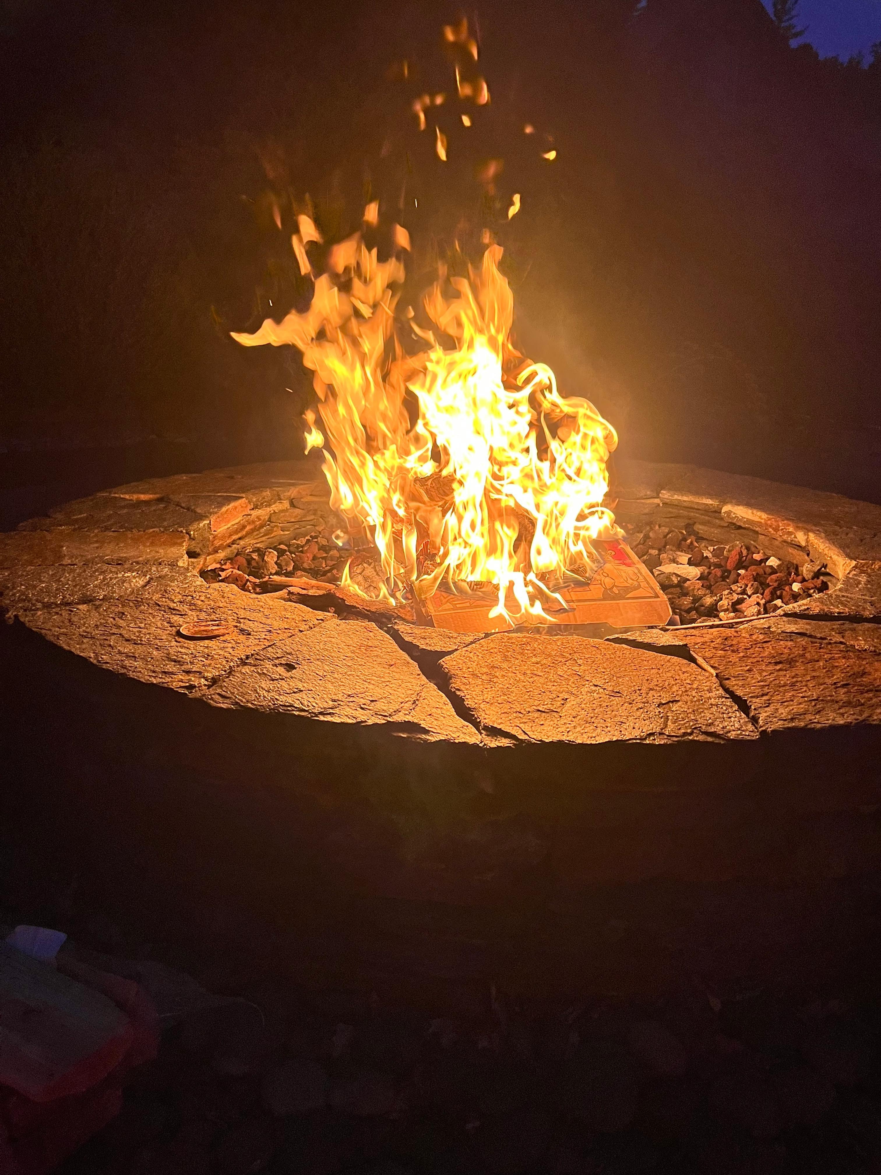 Relax in the peaceful , natural landscape at home in the tranquility of the hot tub with the beauty of the Northern night sky above. and a warm fire at the fire pit or inside at one of the two wood stoves with amazing southerly views of the valley.