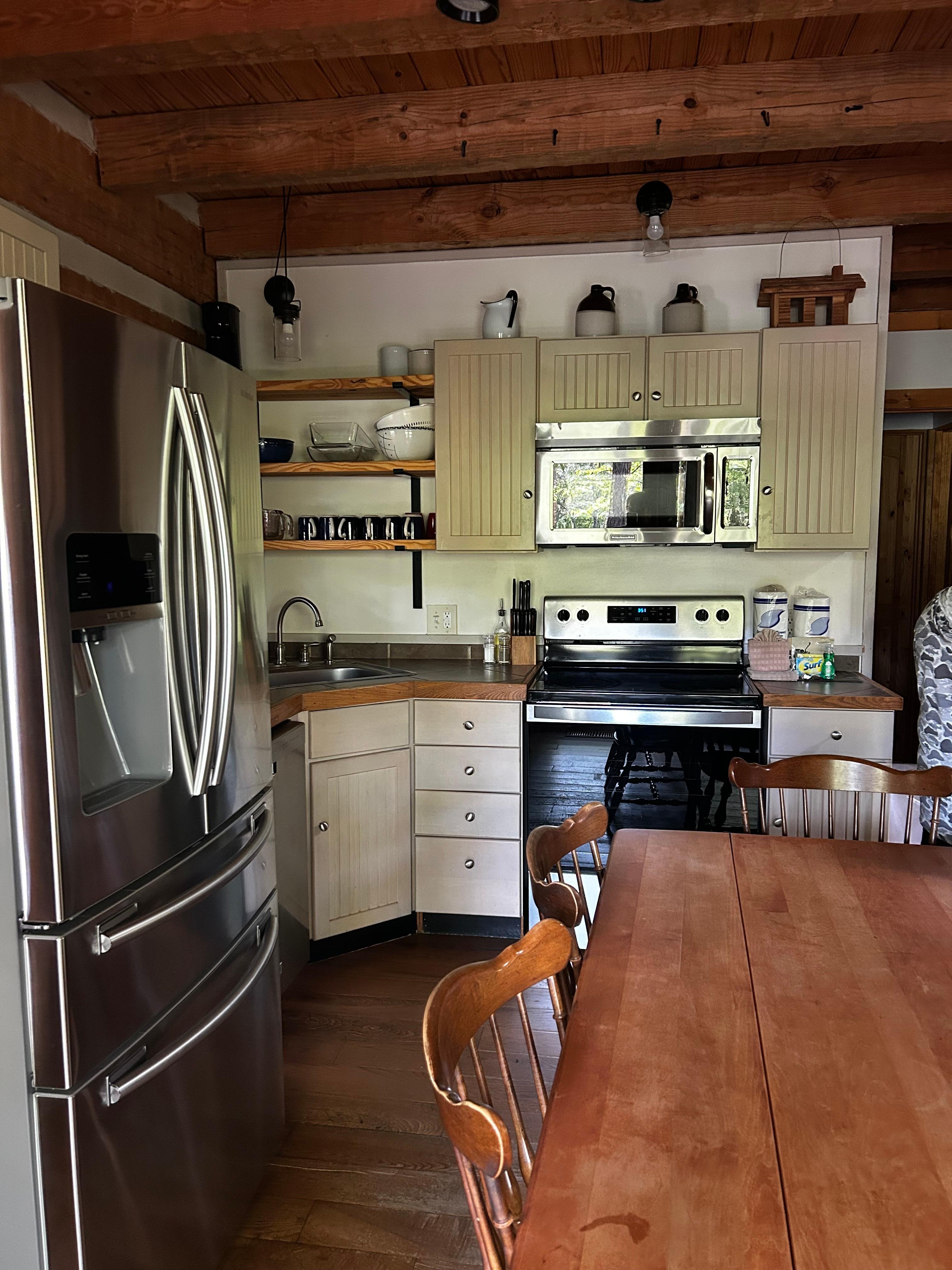 Outside, the wrap-around deck offers a front-row seat to nature's breathtaking beauty. Enjoy a barbecue feast on the grill or unwind in the private hot tub while soaking in the serene forest ambiance.