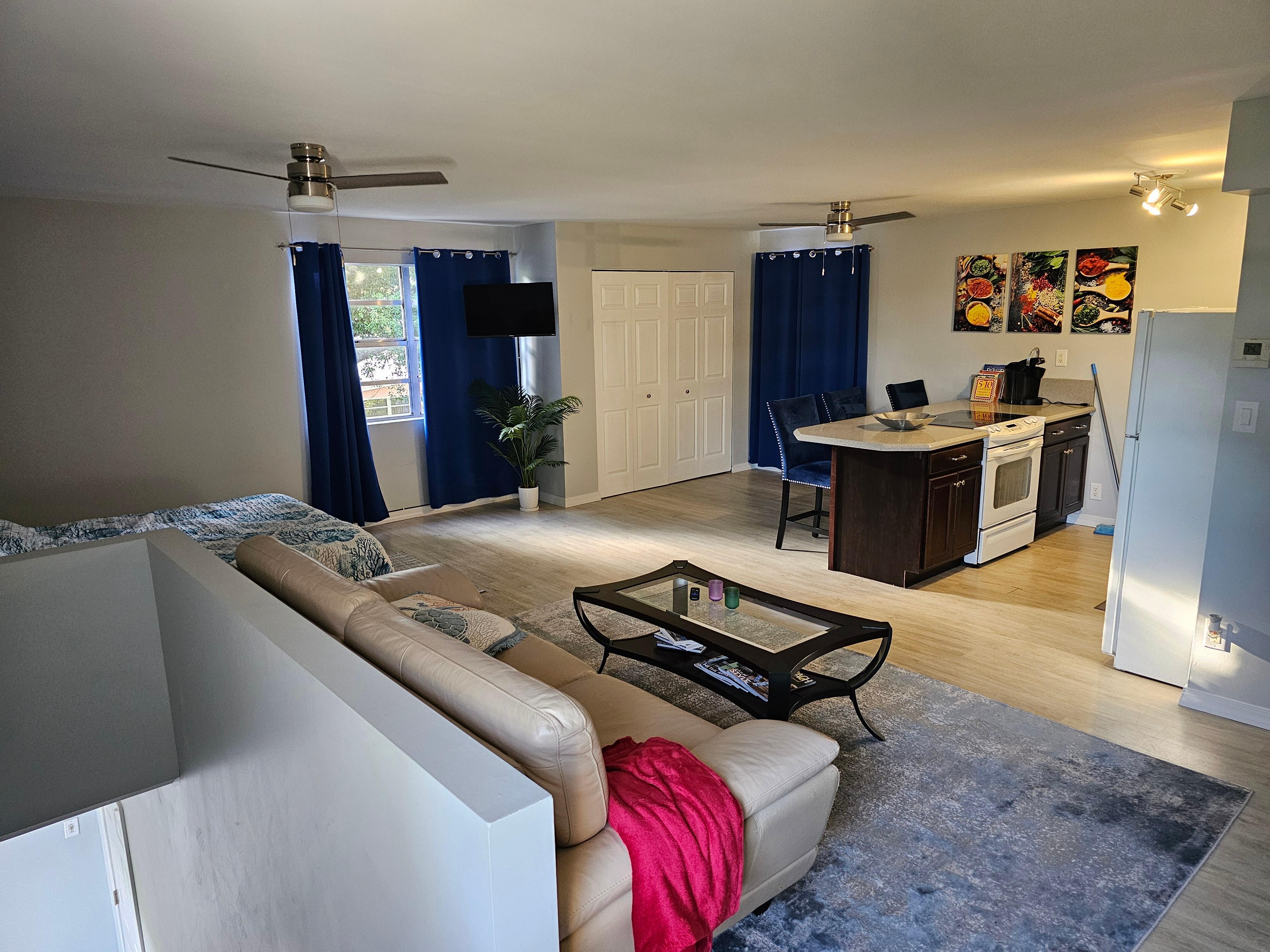 Newly renovated sunny studio on a second floor, separate house in a back yard. Relax in this calm, stylish and spacious space. Enjoy movies, all type restaurants, public transportation. Minutes away from all major beaches, such as Singer Island, Juno Beach and Jupiter Beach. Just few blocks from Kelsey Park. 15 minutes from Palm Beach International Airport.