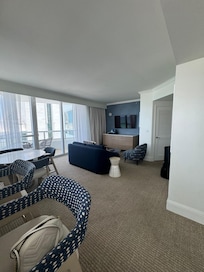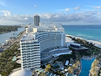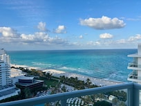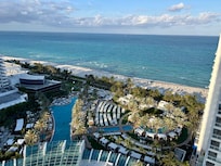 This gorgeous 1000 sq. ft. 1-bedroom apartment with an ocean view is located in the opulent Tresor tower at the Fontainebleau Hotel in Miami Beach.