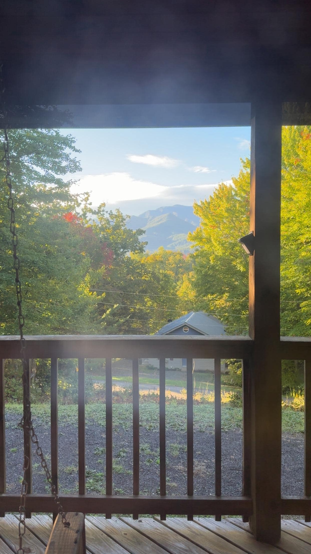 Take in the picturesque mountain views from the rocking chairs while sipping on your morning coffee or relaxing in the hot tub.