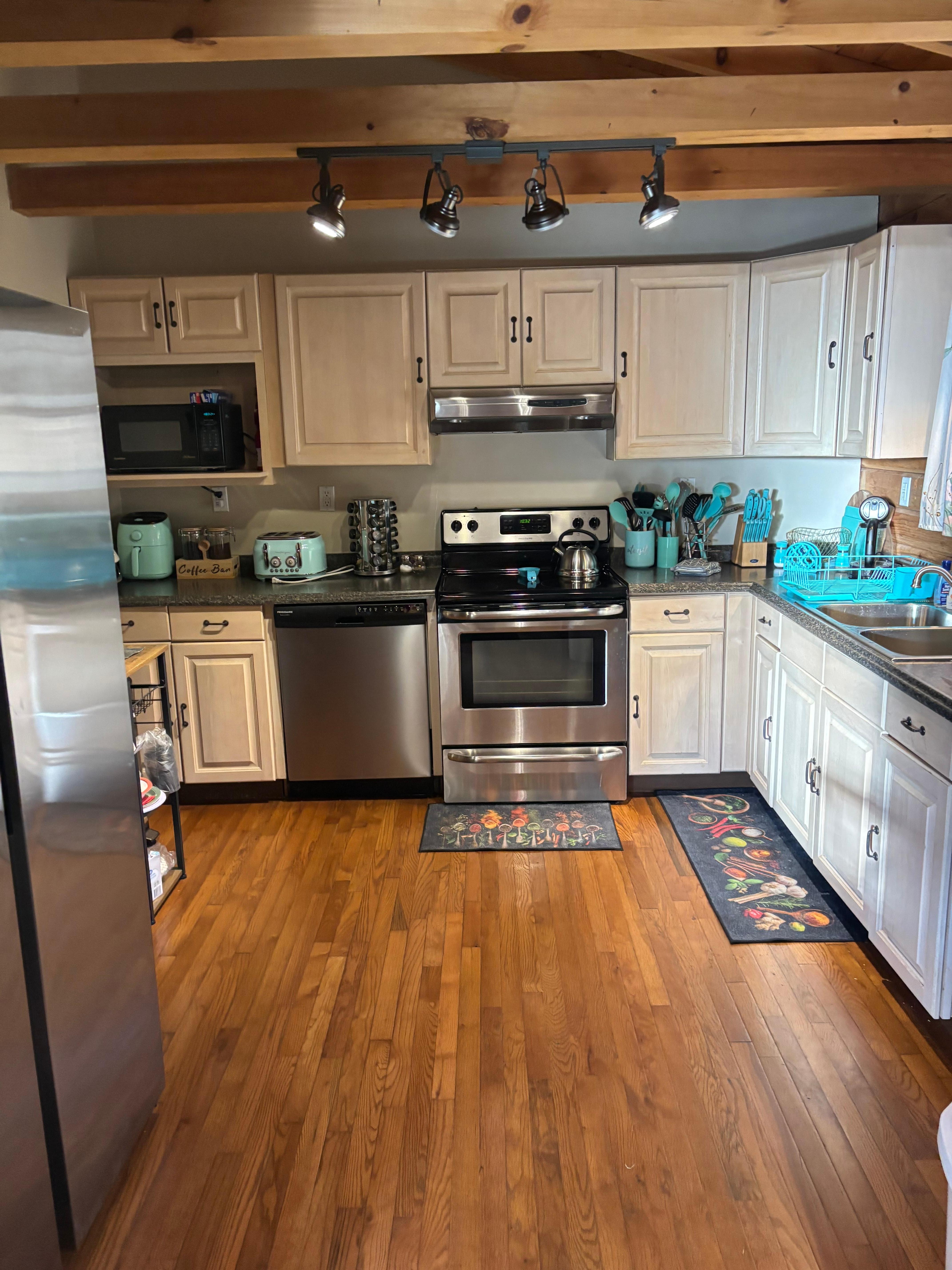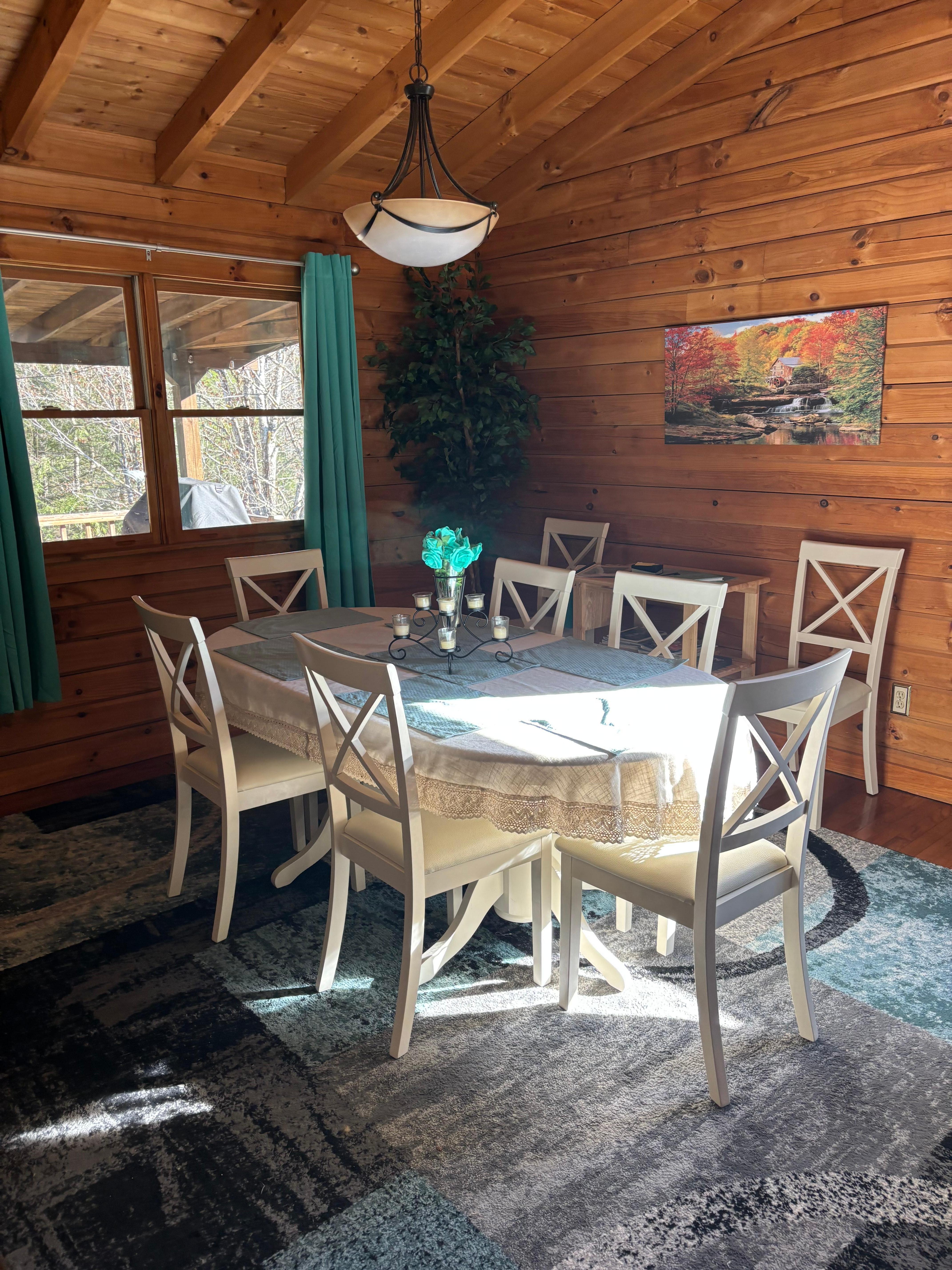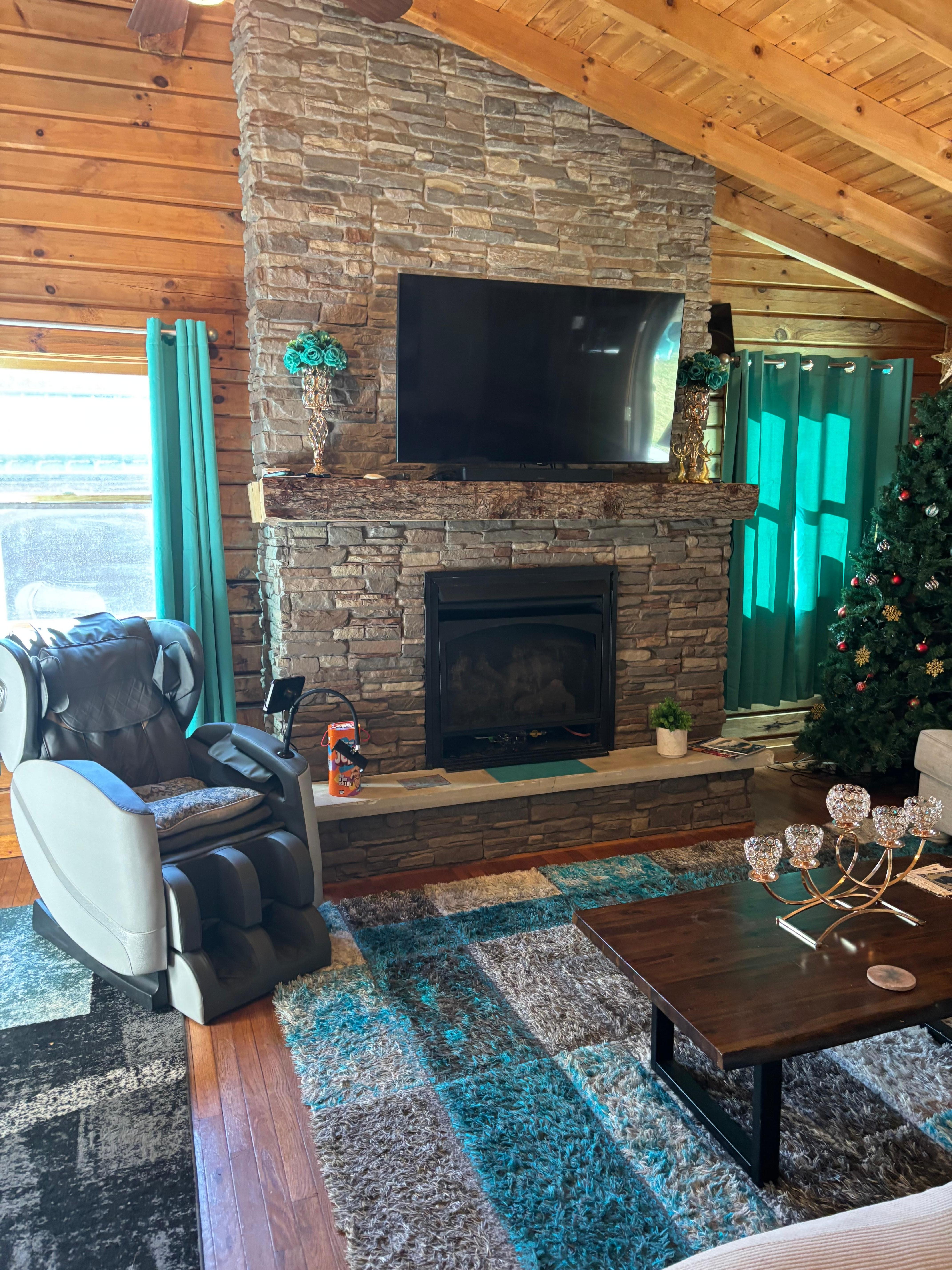 Ascension is a single level cabin with 3 bedrooms and two bathrooms. Our kitchen is fully supplied for your cooking, baking or grilling needs. Our coffee bar has several options for your morning brew, and there’s a great coffee shop 5 minutes from the cabin. Relax on the swing on the front porch or enjoy our outdoor amenities on our rear deck and large backyard. We have foosball, Pac-man and streaming TV for indoor entertainment. The cabin has a gas-powered whole-home generator as a backup in case of power outages.