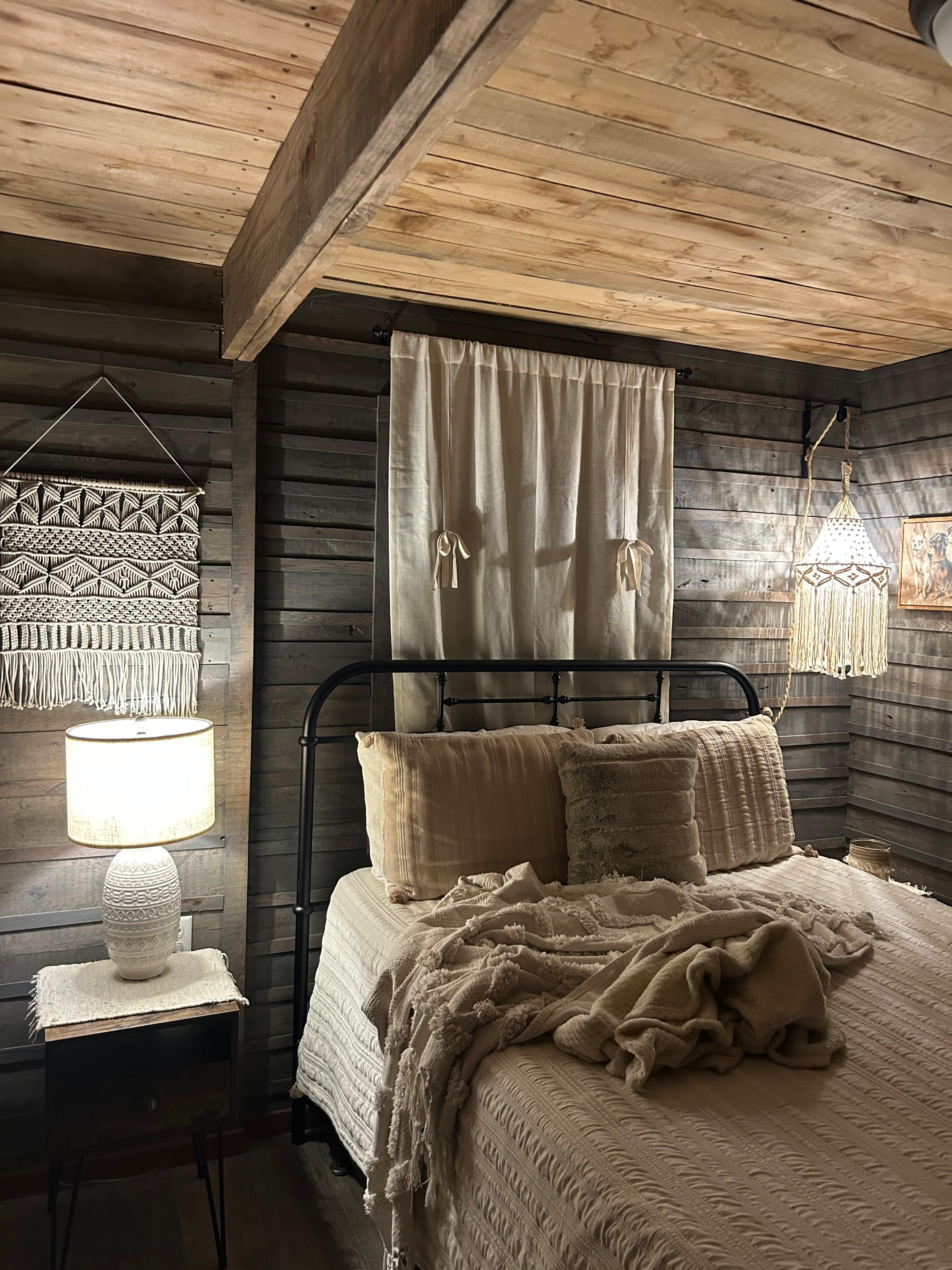 The Hideaway cabin is a newly built, secluded cabin, surrounded by nature. The cabin is a two bedroom, two bathroom, with a full kitchen. The cabin offers the perfect getaway from the noise, and stress of everyday life. Very cozy feel with modern decor and amenities. Enjoy your mornings on the deck, maybe with a warm cup of coffee, and listen to the birds sing. Just a short drive to the town of Mountain View, and everything it has to offer. Shops, restaurants, golf, movie theater, hiking trails, the amazing White River, and don't miss out on the world famous folk music being played around the courthouse square on most weekend nights. Also, who could forget about The Ozark Folk Center, and The Blanchard Springs Caverns, all just a short drive away. Then come back to the cabin and unwind in the hammock, or enjoy your time on the deck with a cozy fire burning in the firepit. If you feel like staying in, the cabin also offers board games, horseshoes and other activities for the whole family to enjoy. Come stay with us, you will love it here!