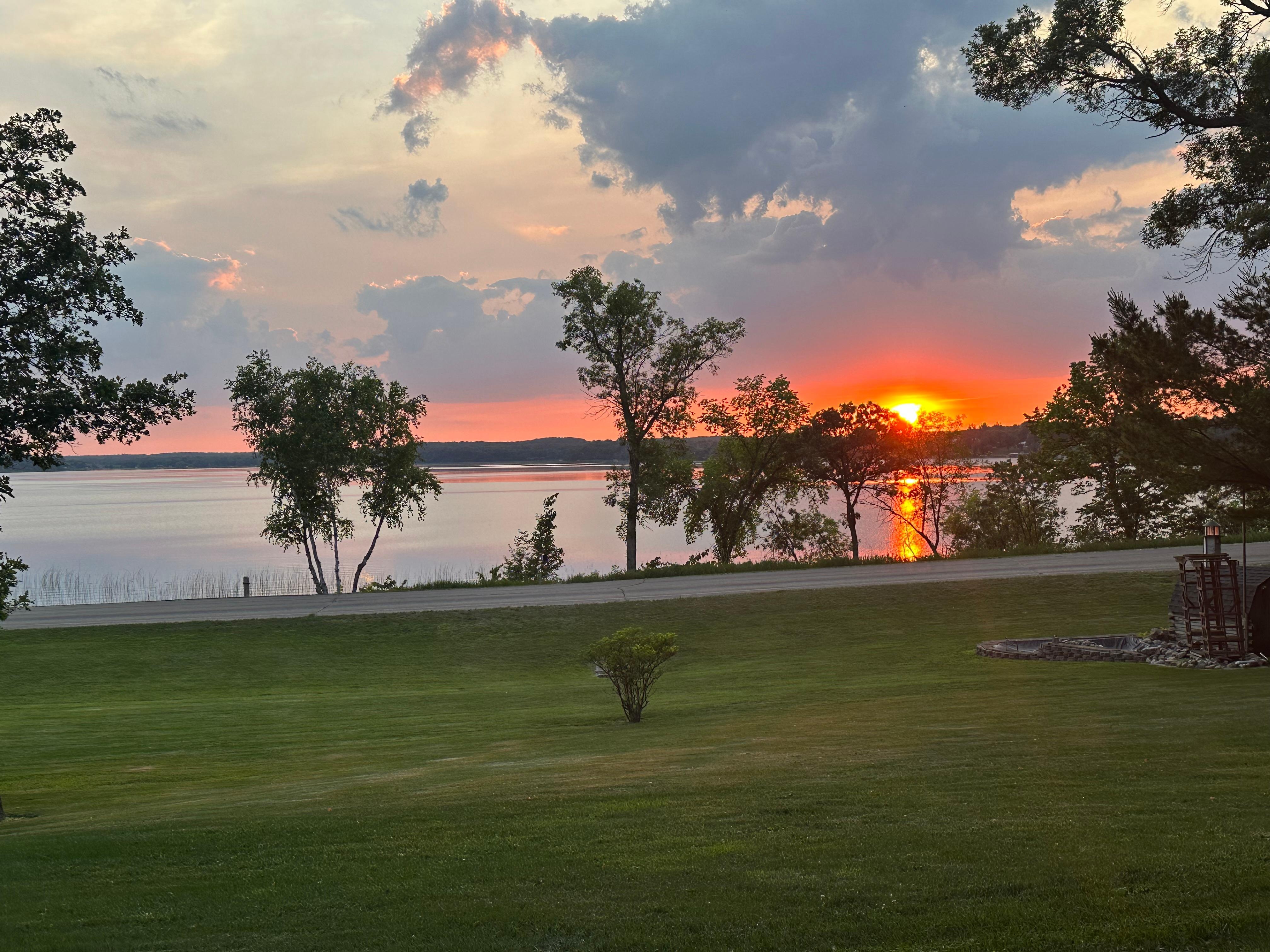 Enjoy gorgeous sunsets during your stay on Stalker Lake. Recently updated 4 bedroom home with open floor plan - 3 bedrooms on main floor and one on lower level.