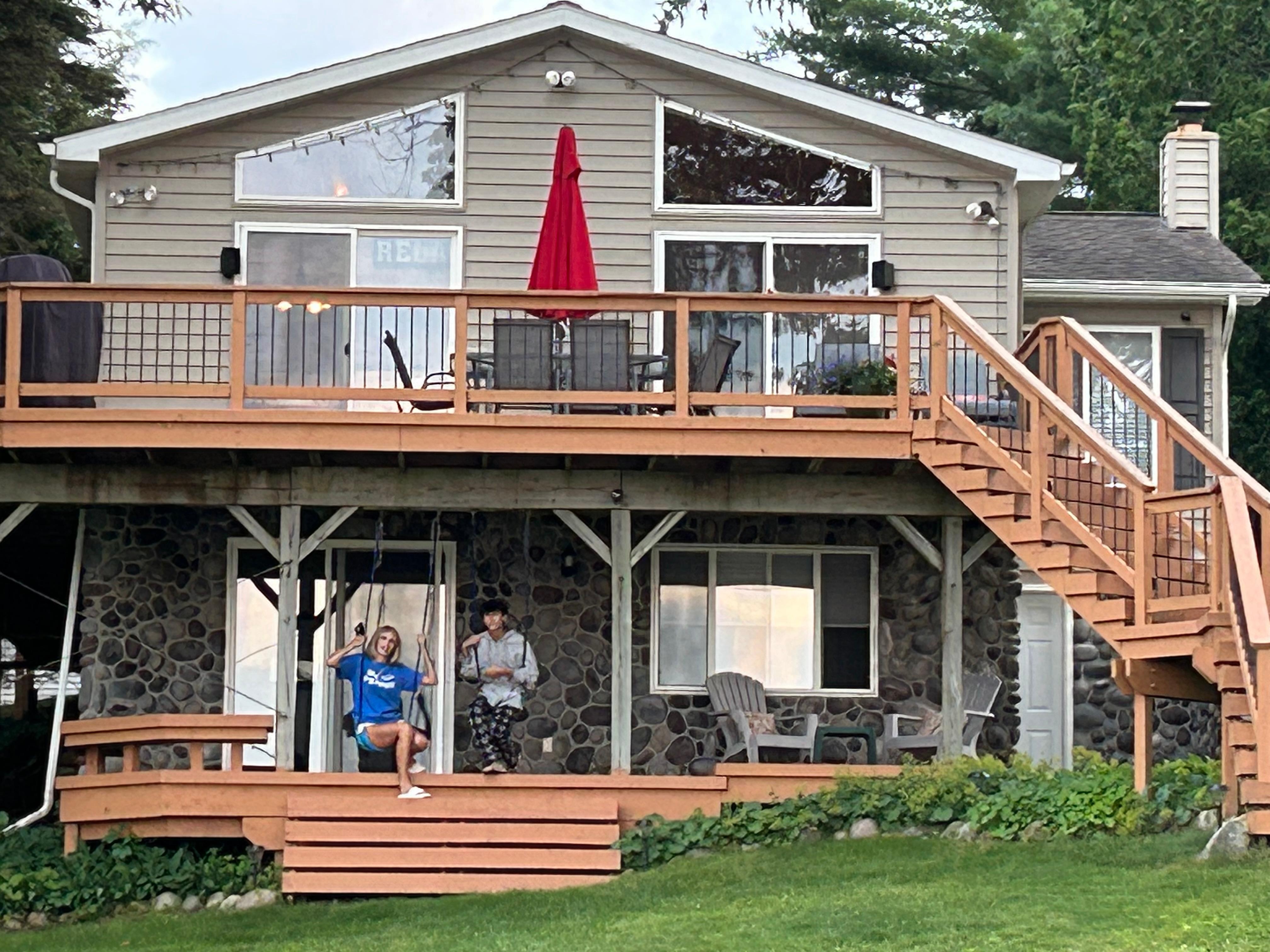 Two separate large family rooms to relax (one upstairs and one in lower walk-out). BRAND NEW wood plank floors in upstairs family room. Huge decks with lots of BRAND NEW outdoor dining table, chairs and lounge chairs to enjoy the gorgeous lake view! Plenty of room inside and out for a family vacation. Activities galore - kayaks, canoe, fishing, cornhole game, firepit, swim rafts are all included. Come enjoy all the classic Michigan "Up North" experiences at this beautiful lake front home. Bring your own boat or rent ours - Pontoon boat available separately to rent. Grocery stores, restaurants, ATV trails, hiking and mountain biking trails and many golf courses nearby. Tawas and Lake Huron only 30 minutes away. Fully stocked kitchen with everything you need plus large gas grill. Located on a huge sprawling lot for privacy and room to spread out on family friendly AuSable Lake!
