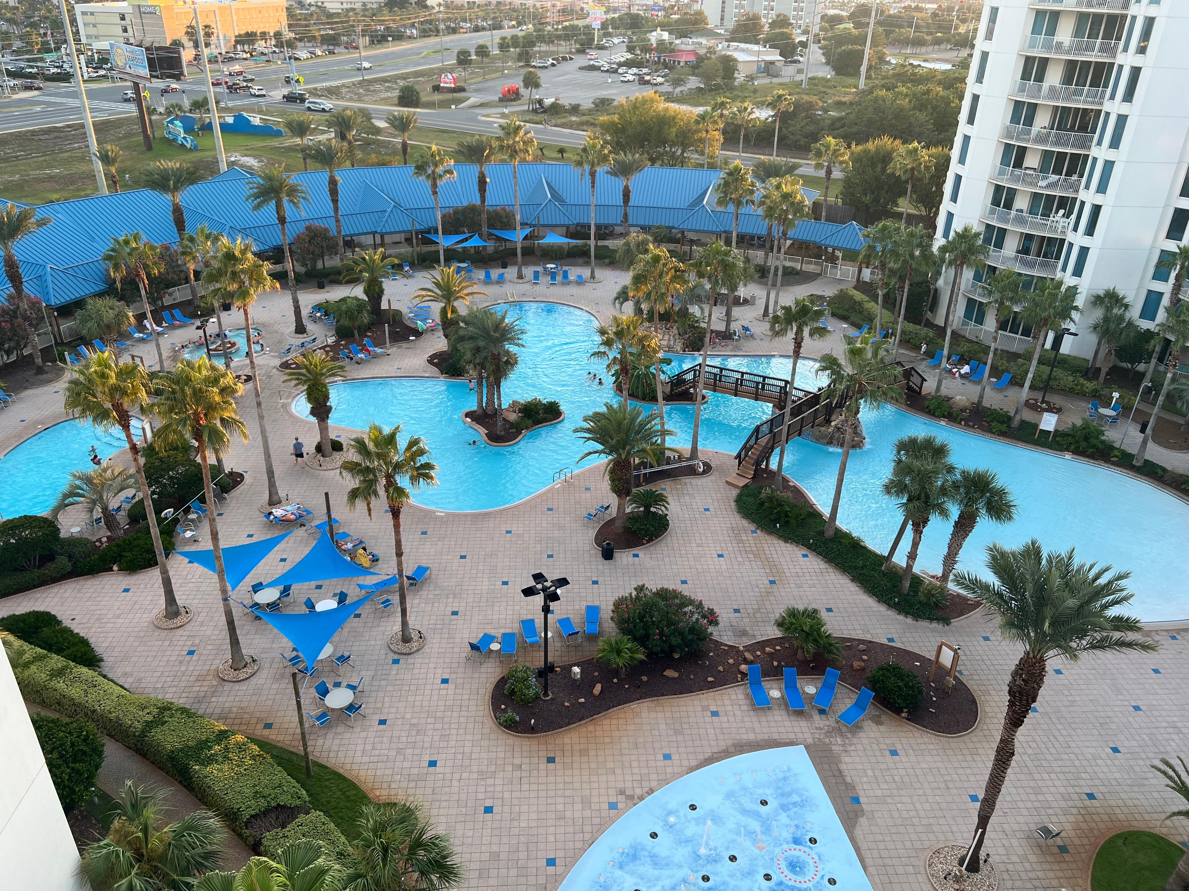 The Palms of Destin is known for its premier amenities, including an 11,000 SQ Ft Lagoon Pool: Enjoy a heated pool, hot tub, and children’s splash area, all designed for fun and relaxation.