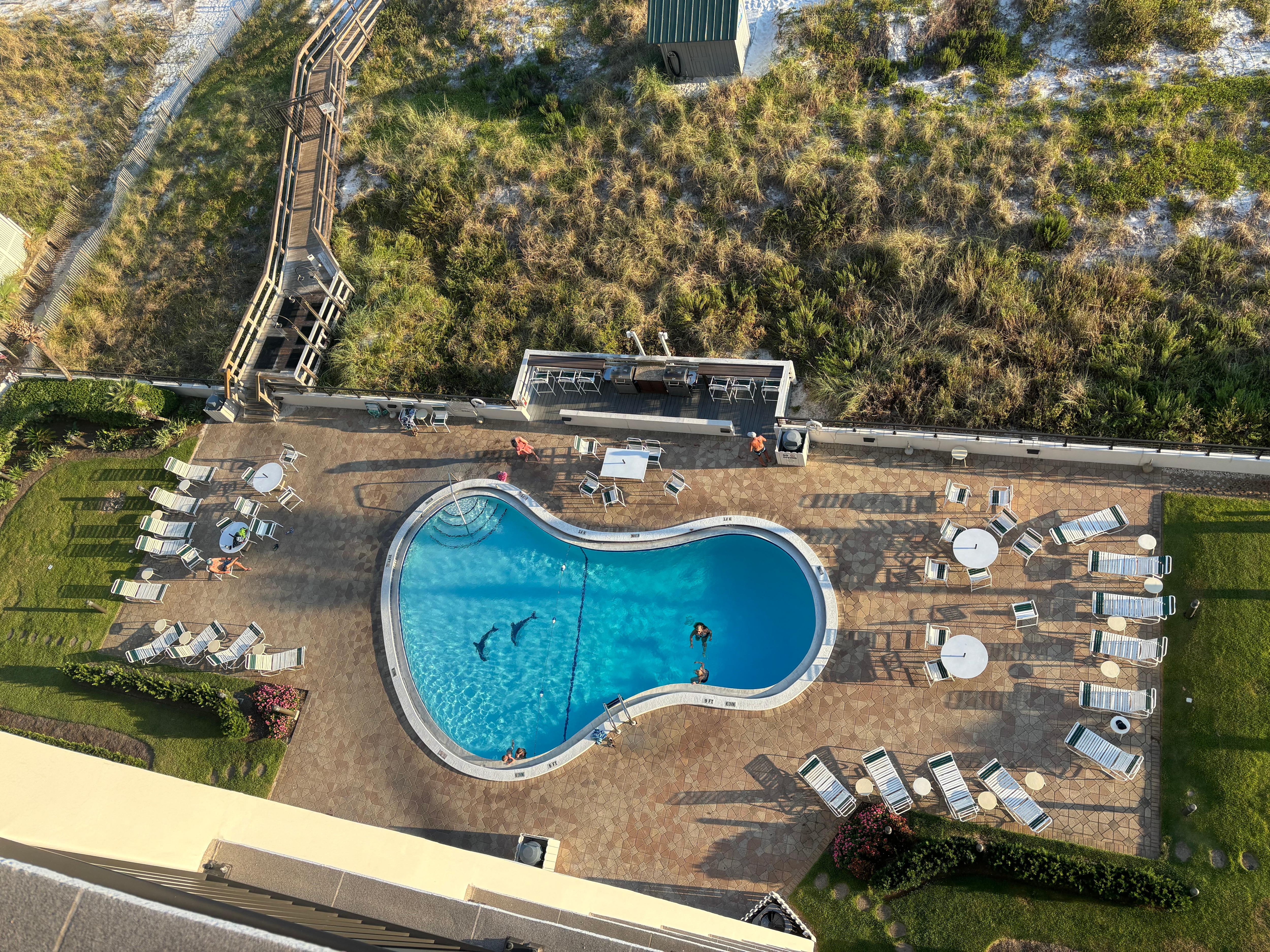 Unit #1105 has a fully stocked kitchen and a wet bar with ice maker to help you relax, and leave your worries behind. Just 2 miles from the Destin Commons shopping area, including Bass Pro Shops for the men. For the kids, and 'grown kids', the Big Kahuna water park is within walking distance from the complex. The finest restaurants and shopping are within minutes, and golf....there are great courses everywhere!!! Two lighted tennis courts are here in the complex. What a place to relax.