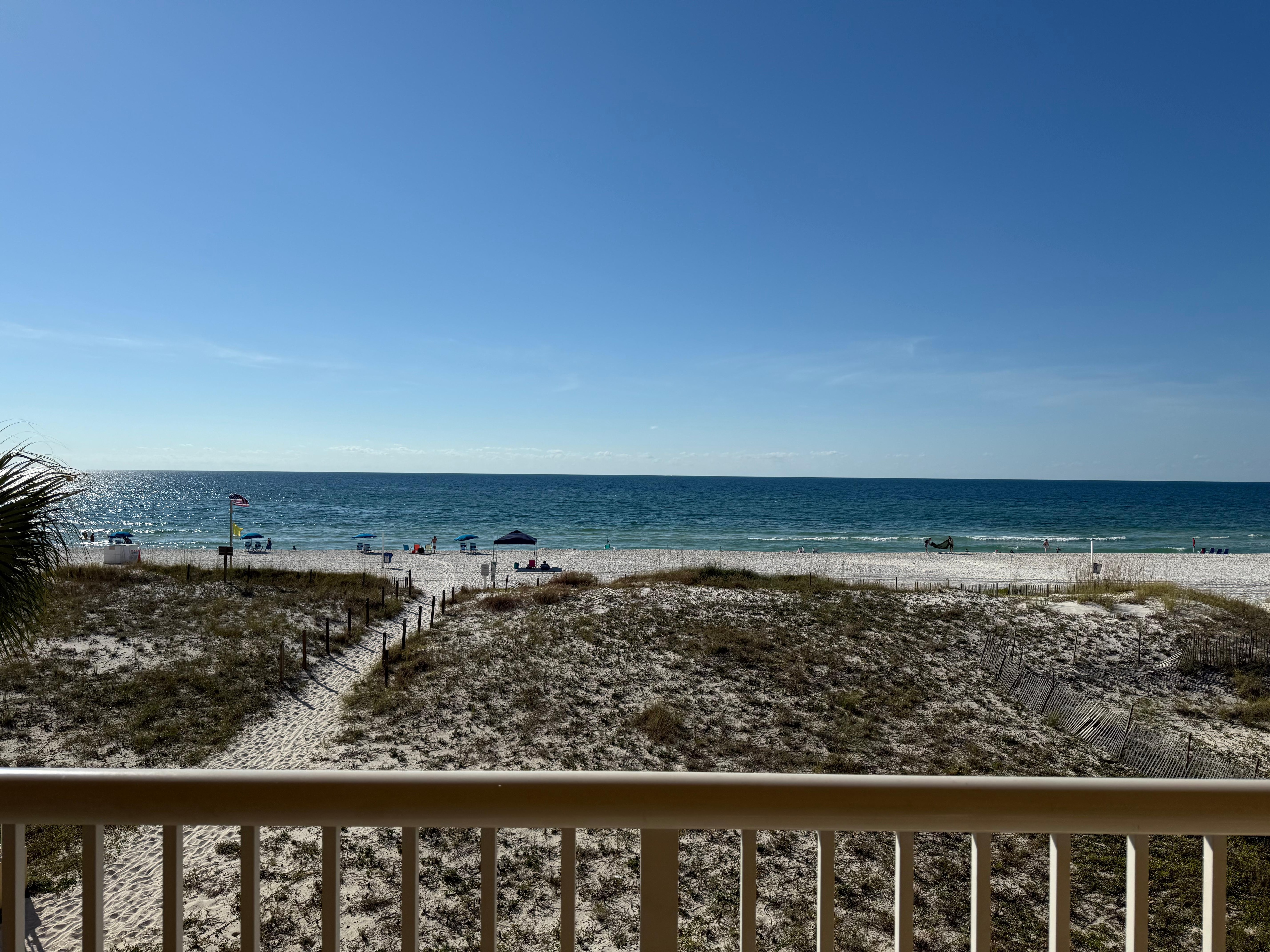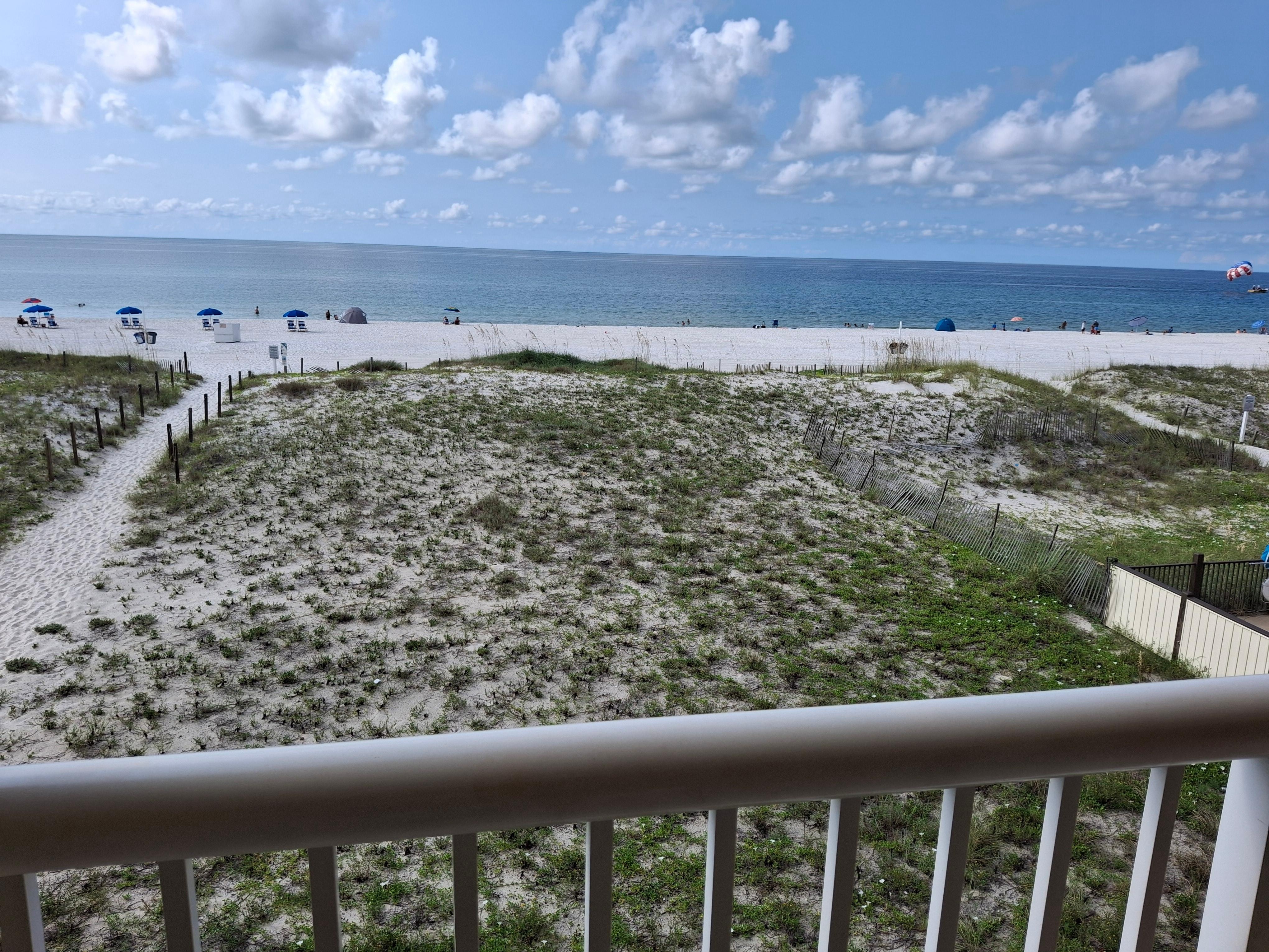 This second-floor condo offers a cozy private balcony with unparalleled views of the beach and the emerald waters of the Gulf of Mexico - this is a fantastic spot to unwind, enjoy a refreshing cocktail, and take in the marvelous views. Another great spot to relax is the sunny living area, which boasts comfy sofas and a TV with cable to keep you entertained during your stay. Come back home from a splendid time in the community pool to a delicious homemade meal prepared in the well-equipped kitchen, complete with all the essentials. You have everything you need to whip up tasty and quick snacks on the go and full-course meals. Planning a longer stay? The condo features an on-site washer/dryer! The primary bedroom has its own TV, access to the balcony, and en suite bathroom, while the guest bedroom has a TV ensuring supreme comfort every moment of your stay.