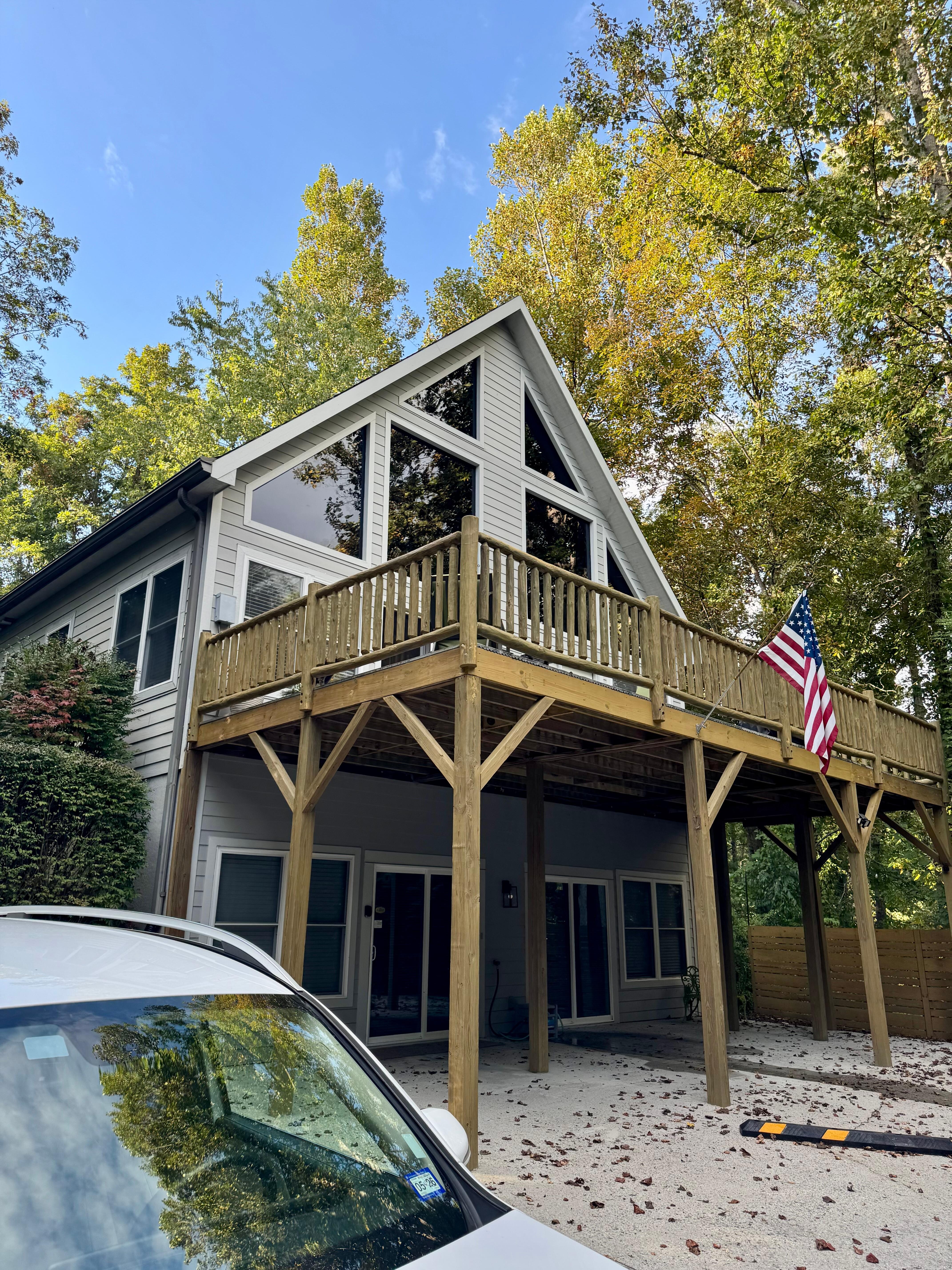 Relax in front of the 65" smart TV (just log in to your streaming accounts) or step outside to the expansive deck with a gas grill, picnic table, and plenty of seating. At night, fairy lights set the scene for stargazing.