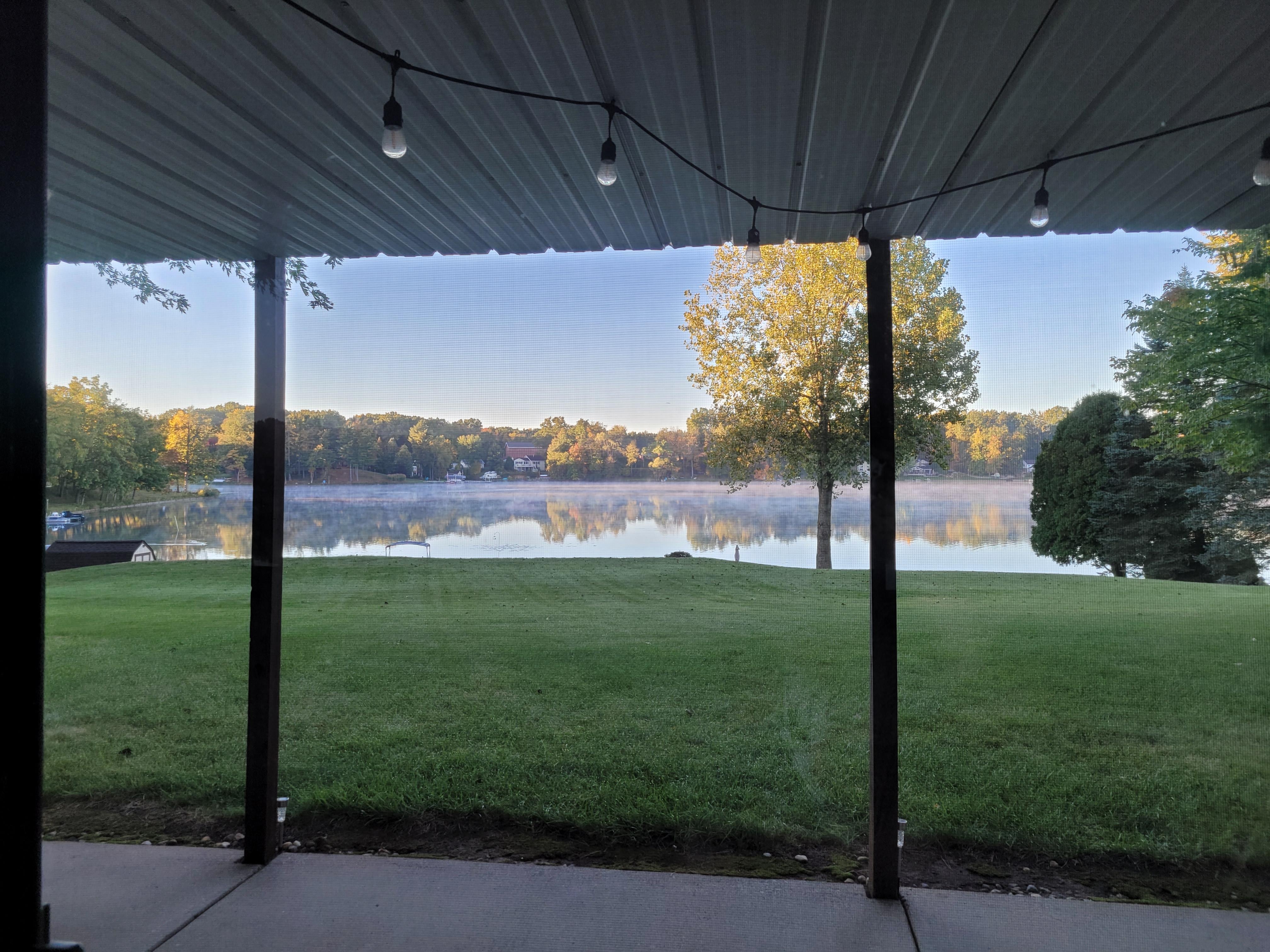 Large 1 Acre Lot with 150 foot of lake frontage. Spacious 2 bedrooms, Kitchen and Dining area with Lake view from all. Large Family room. Large Covered Patio with Outdoor Funiture, Grill, Fire Pit, Private Dock with Row Boat and Paddle Boat, Kayak, Floaties, Cornhole, board games and a hammock. Free Wi-Fi, 300 channels and streaming apps. Very quiet location with plentiful wildlife and all the sounds of nature. Great fishing from the lakeshore or take the kayak or rowboat out. Beautiful sunsets.