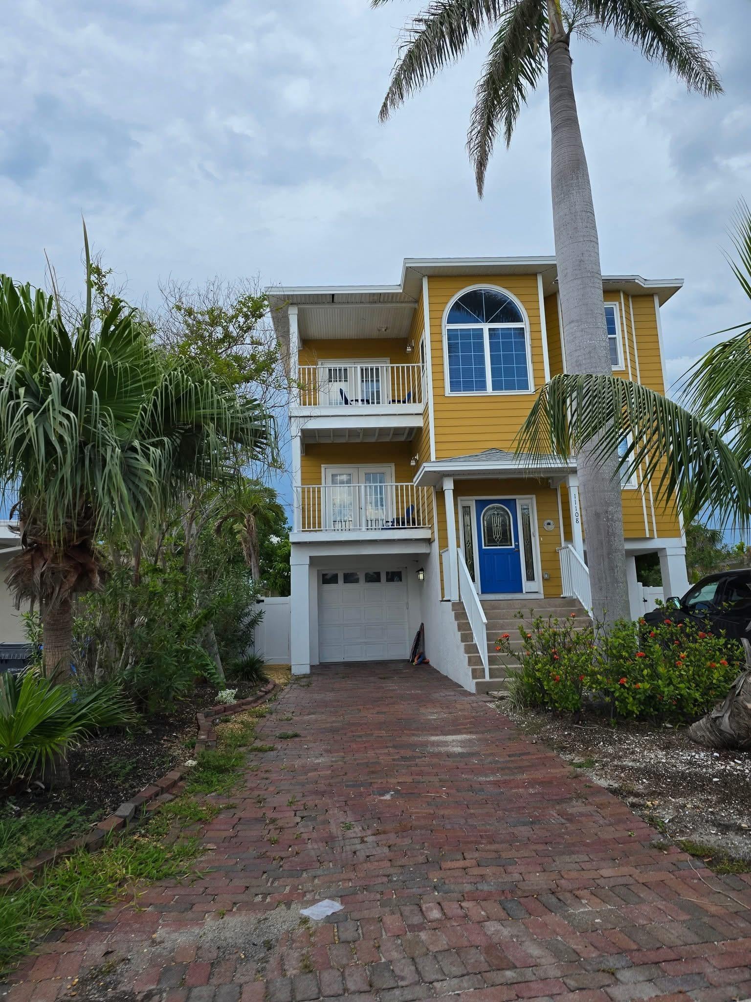 This elevated Key West Style 3 bedroom, 3 bath home is a comfortable get away offering lots of views from the outdoor decks/patios (5) to relax, listen to the birds, watch weather, sunrises, and colorful sunsets! Open concept living area that sits 12 feet above the street.