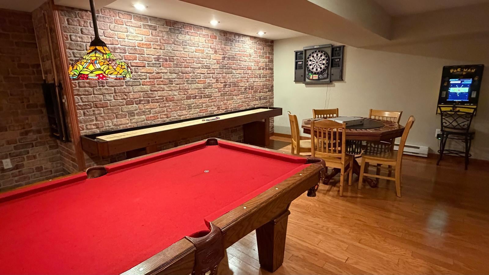 • Games - Billiard pool table, shuffleboard table (with bowling accessories), Arcade1Up PAC-MAN, electronic dartboard, Two-in-one poker/Uno (and bumper pool table) are available games.