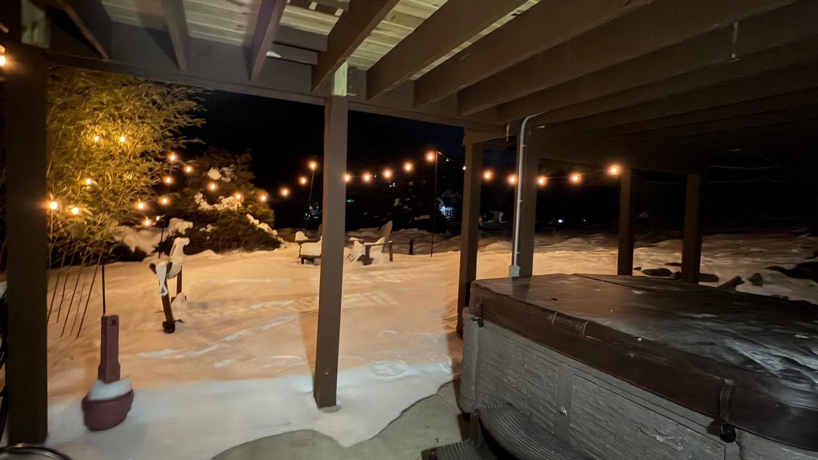 • deck with Hot tub (very powerful 95 Jets 7-person hot tub with LED lights and Bluetooth music)