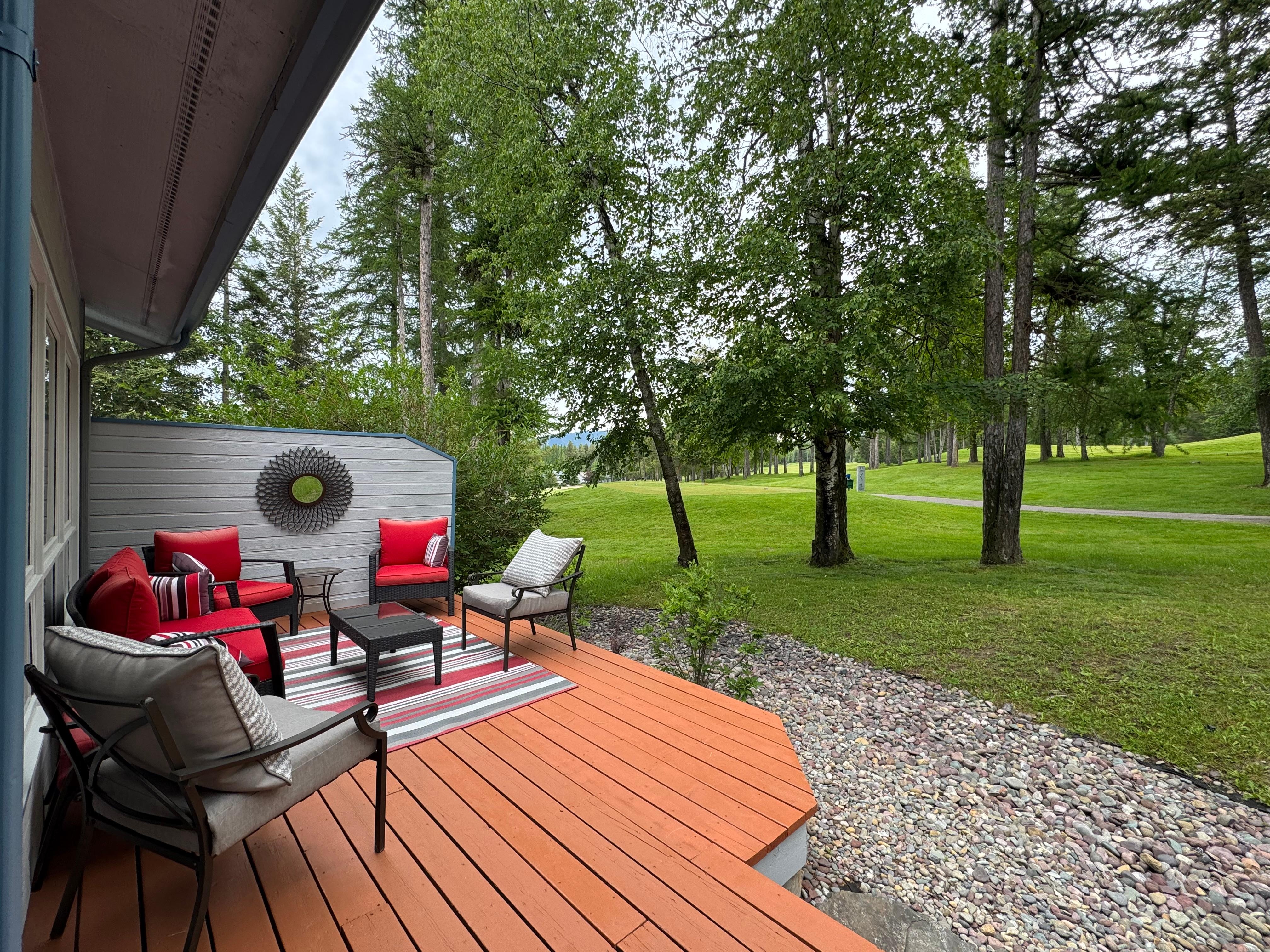 The three of us are still talking about our wonderful stay at Meadow Lake Golf Resort! Only one in our party is a golfer and because of a minor injury, she was unable to golf. However, she did convince a passerby to use his driver for two swings at the 11th tee. This lovely townhouse is tucked into a private location — very quiet, comfortable and well appointed. We slept peacefully. We had all that we needed for an over-the-top mini vaca. The airport, Glacier National Park, restaurants, and other entertainment are conveniently close. The rental agent was always available, friendly and helpful. We are considering another stay.
