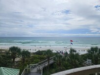 Walk into this nautically inspired condo, with unique touches that will have you sailing away to a place of relaxation and good times. With plenty of comfortable seating for families or couples and stunning views of the beautiful Miramar beaches. Walk out to the private balcony and have your coffee or sit back and people watch. At night unwind with a drink and take a dip in one of the many pools or hot tubs. Cook like a pro in this fully stocked kitchen or grill out at one of the many grilling areas on property. The condo has two bedrooms, one with a King bed and the other with two Double beds. There is also a Queen sleeper in the living area. There are two full baths and plenty of space for you and your guests to spread out and enjoy your time at Nautical Dunes!