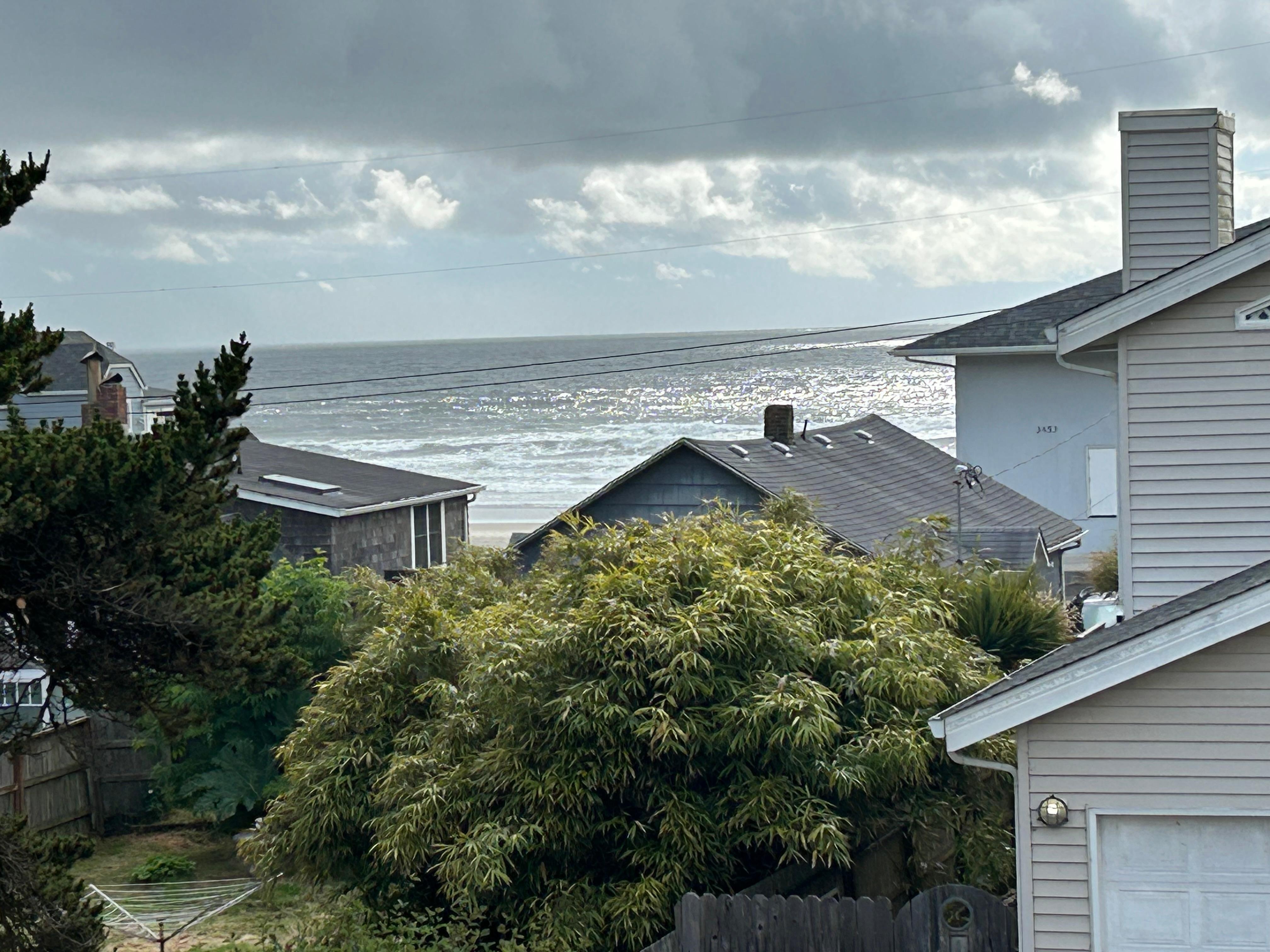 Beautiful, cozy, super clean home with great ocean views in North Lincoln City, Wecoma beach neighborhood. Enjoy sitting on 1 of 2 balconies, or by the electric fireplace of the upstairs living room, while watching and listening to the waves. Perfect for two small groups to have separate living areas. The uppermost area features a living room w/ large screen tv, full kitchen, master queen bedroom, triple bunkbed room and main bathroom.