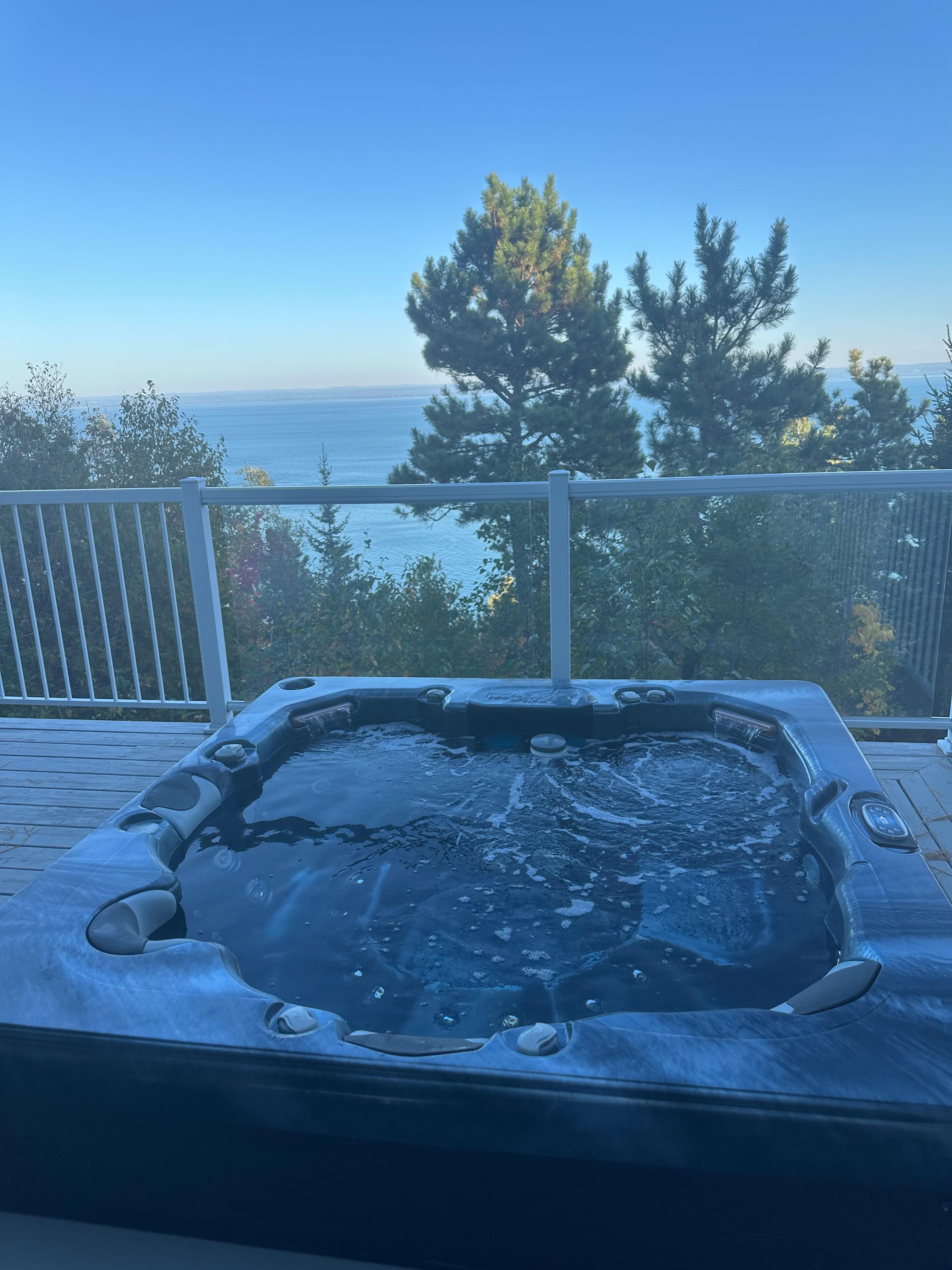 Located in a calm and peaceful area on a private estate just minutes from La Malbaie, this splendid cottage with a panoramic view of the St. Lawrence River, can accommodate up to 8 people.