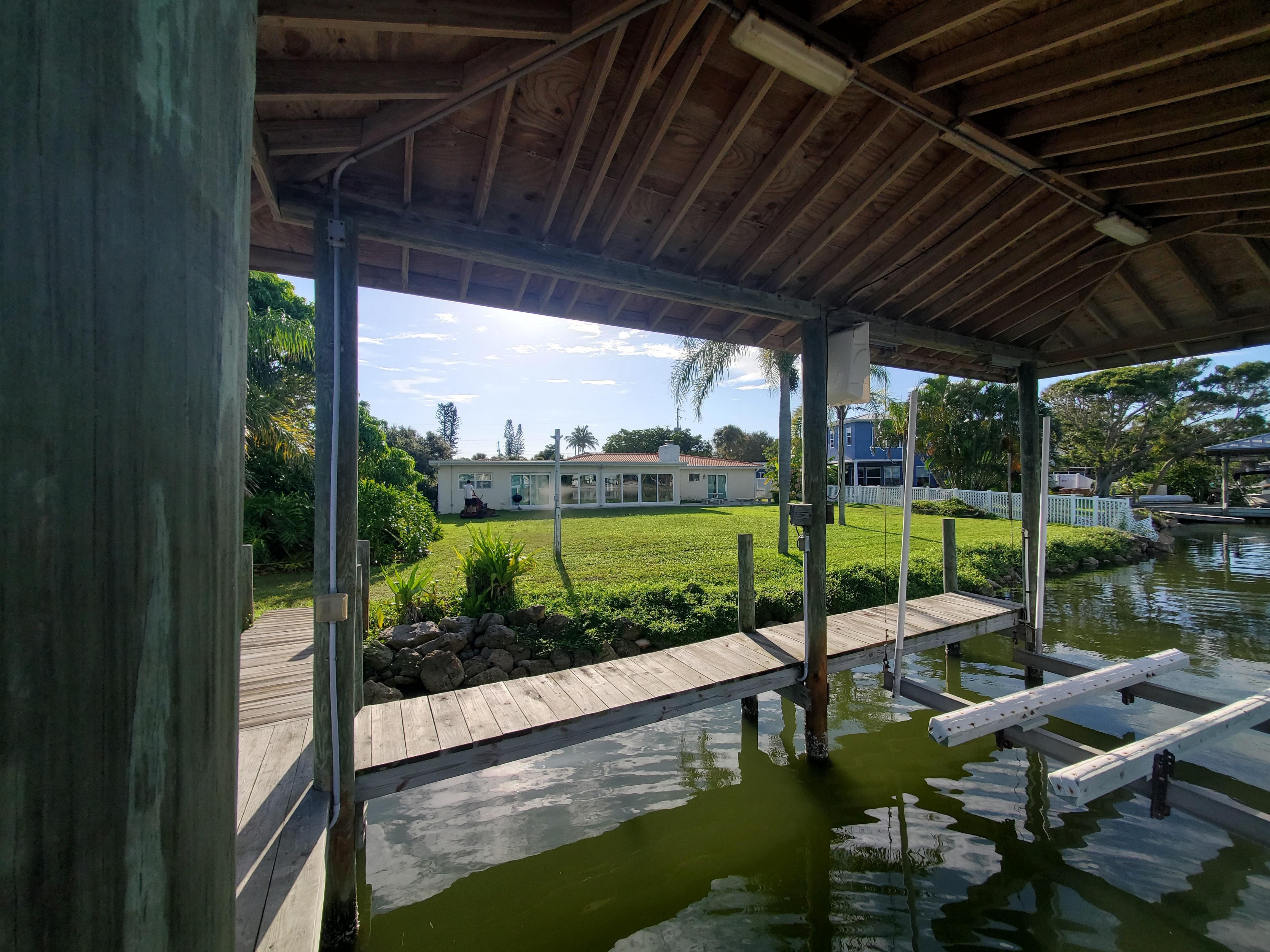 This is a large river front home with a .75 acre yard which is fenced in the back where you'll see manatee's, dolphins, blue herons, and enjoy peaceful kayak rides (there's a little lagoon near by where the manatee's hang out!)