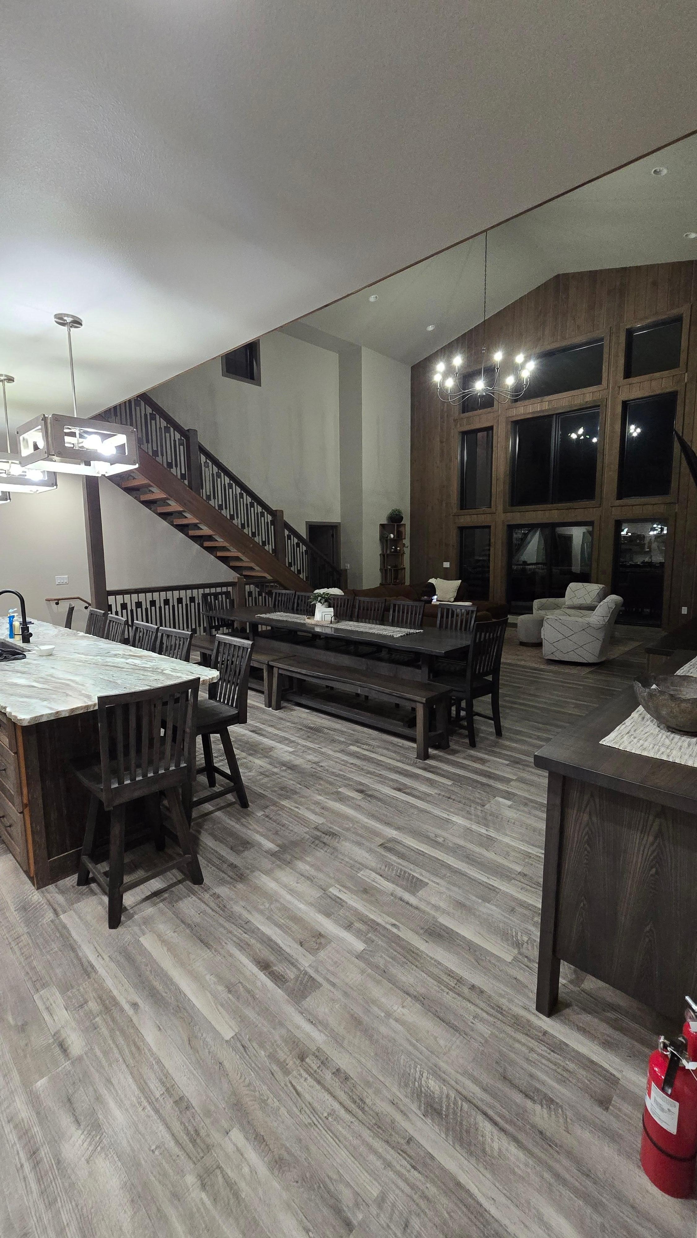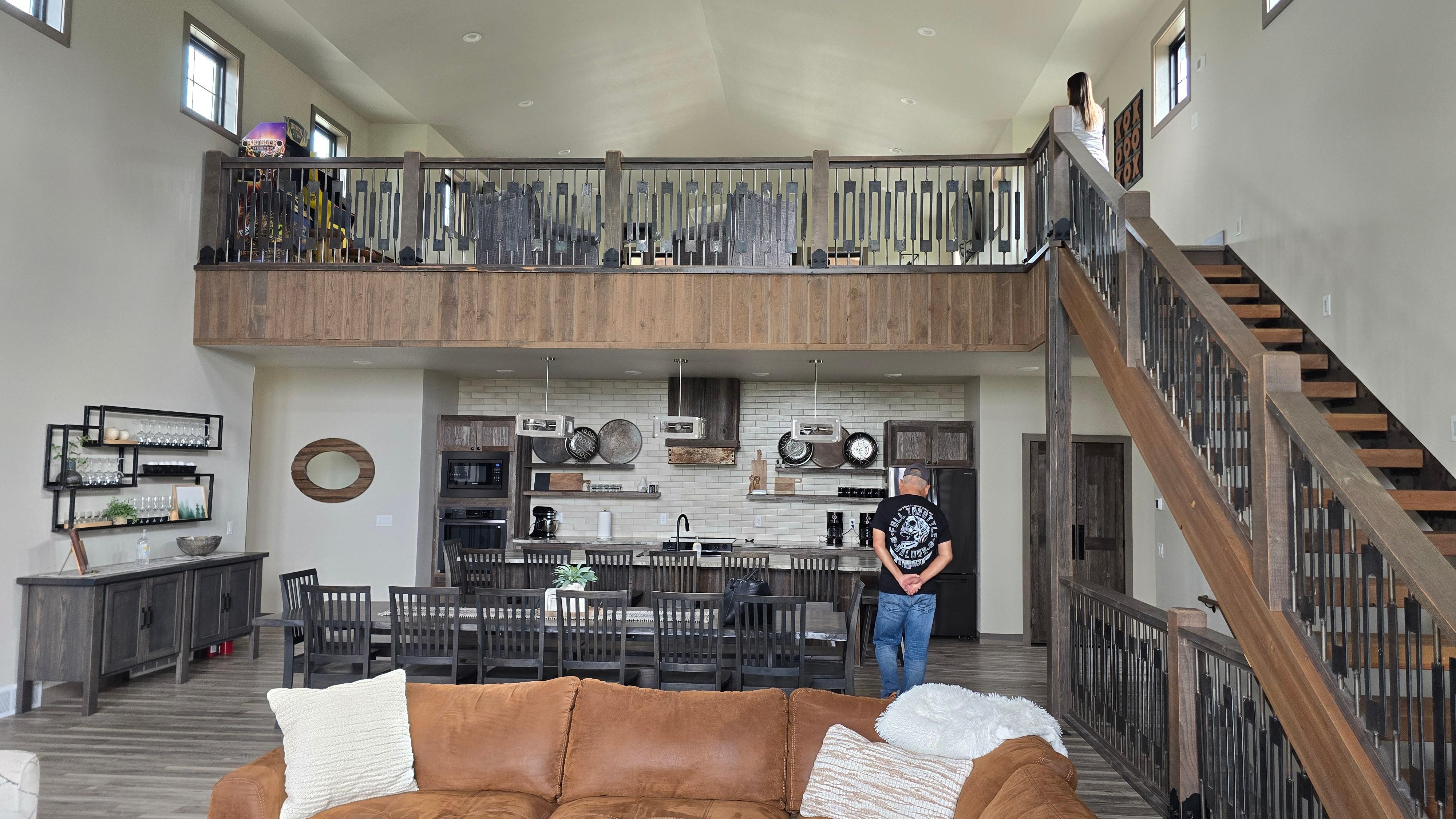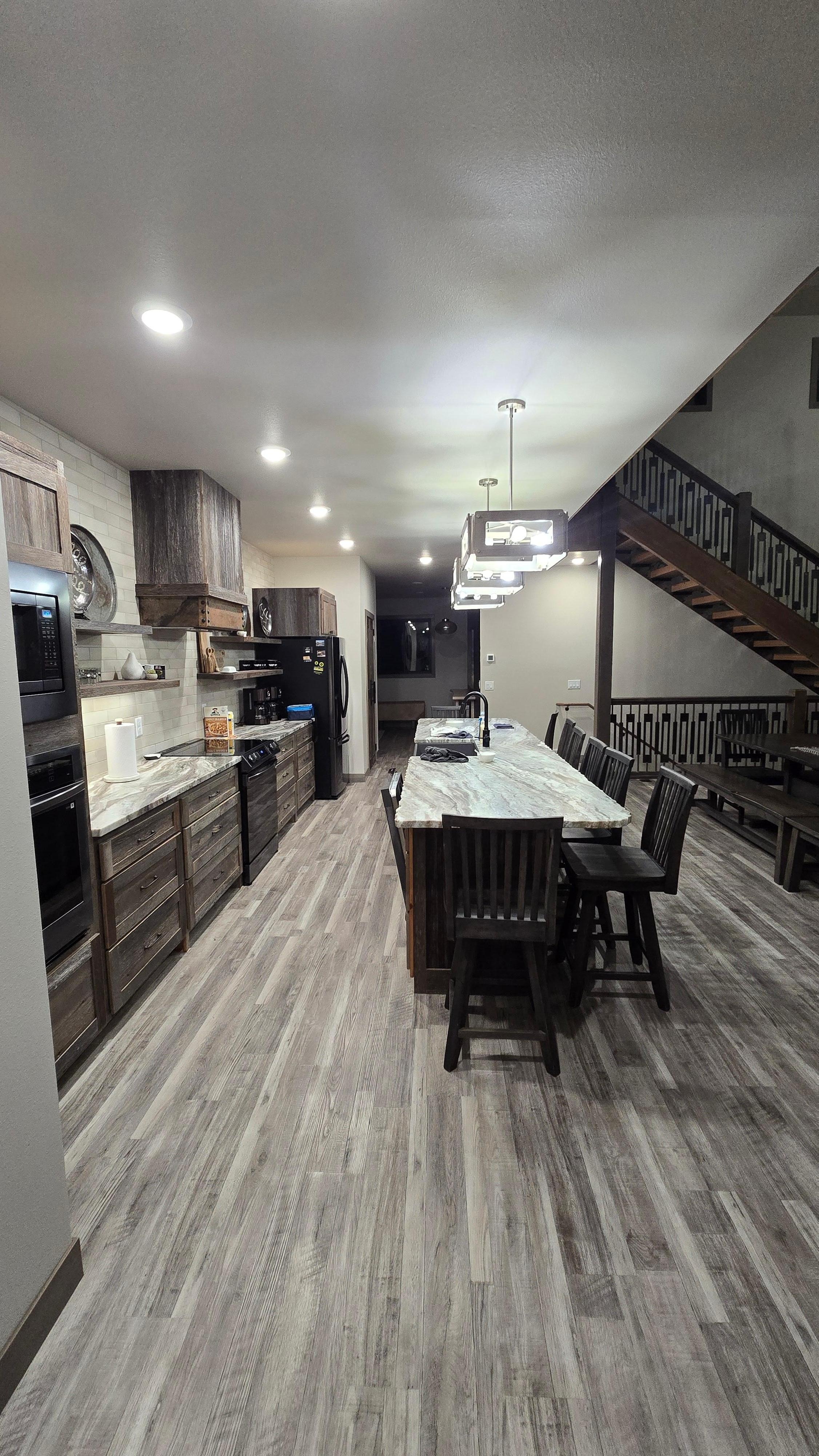 This hand-crafted 5100 sq ft lodge features 6 bedrooms/ 5.5 bathrooms and sleeps 27. With an additional 1800 square feet of outdoor living space, there is room to gather together, or to spread out. Unique and spacious, this lodge boasts a giant great room with a two-story fireplace and ample comfortable seating, all in front of a massive bank of windows to enjoy the view of the Black Hills. You will love the spacious kitchen with plenty of room for everyone to gather with a 14-foot island and a 12-foot-long table! You’ll find all the amenities you