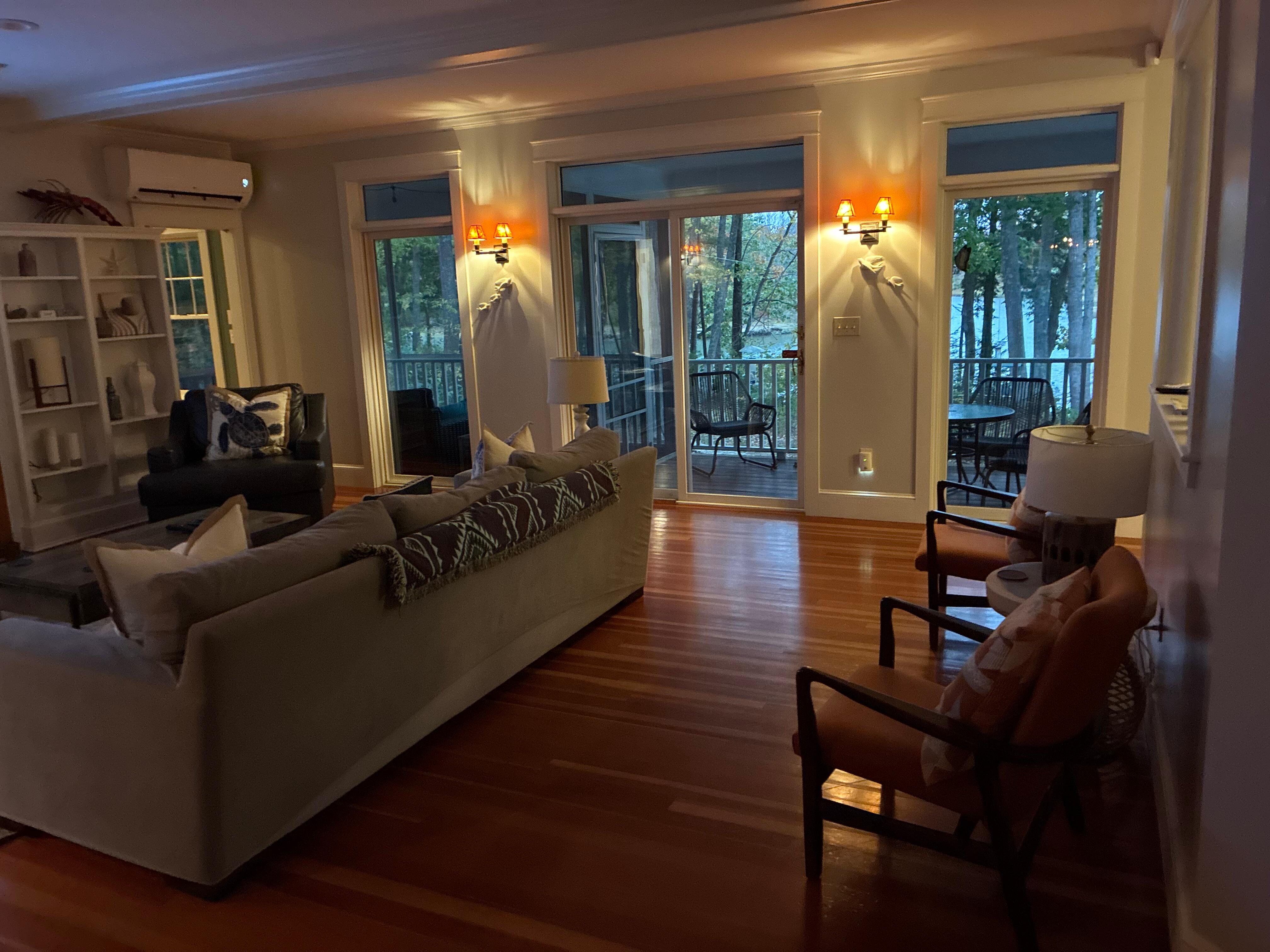 This 6-bedroom, 3.5 bath home allows you and your guests various spaces to spread out, with a first floor queen bedroom, four bedrooms upstairs, including a large primary suite and an adorable space specifically designed for kids, with a full/twin bunk bed and futon. Two upstairs bedrooms offer the experience of a peaceful sleep on the still and dark river, while waking to the sounds of the ducks and geese. The house can sleep 16 people comfortably.