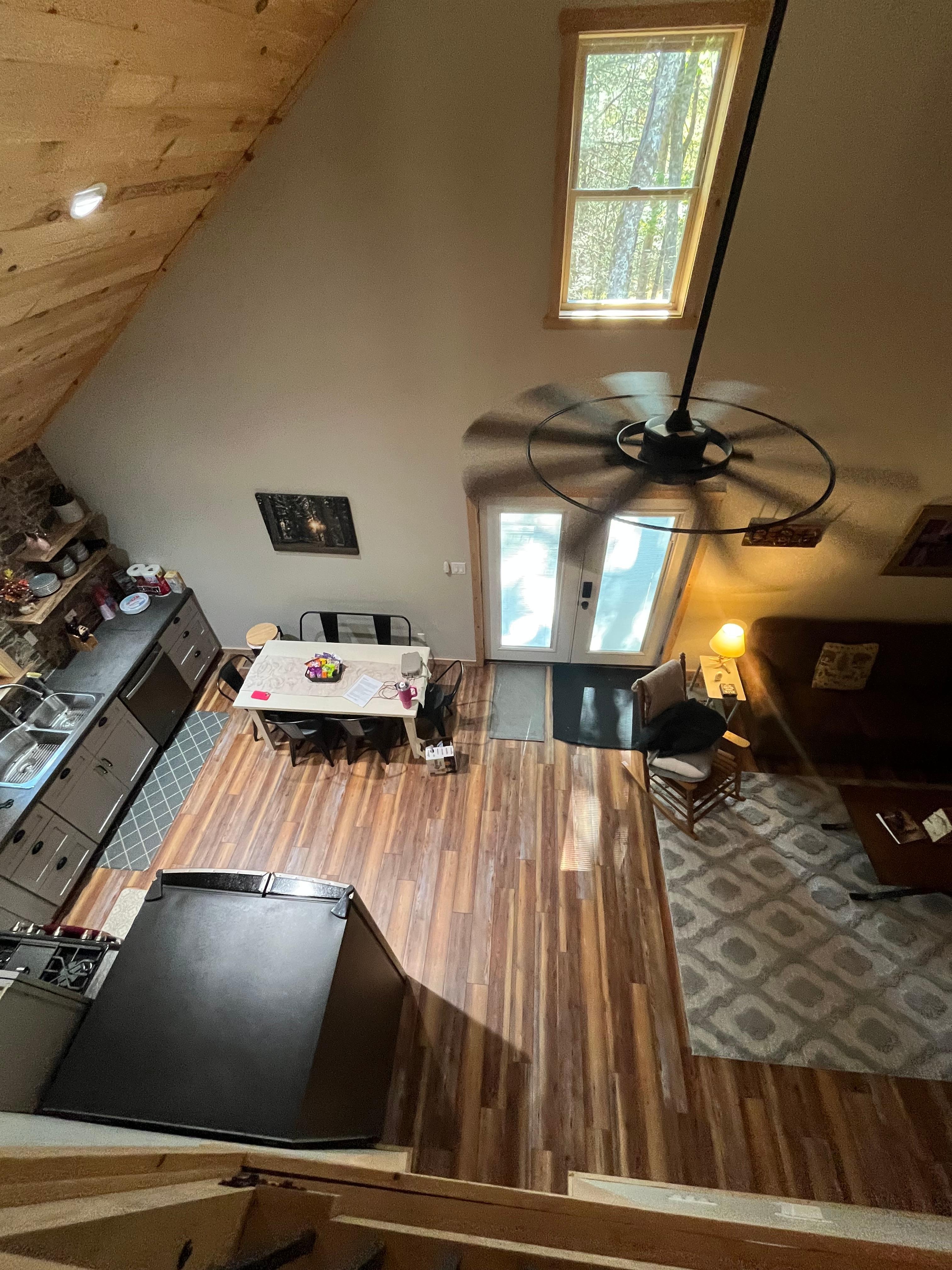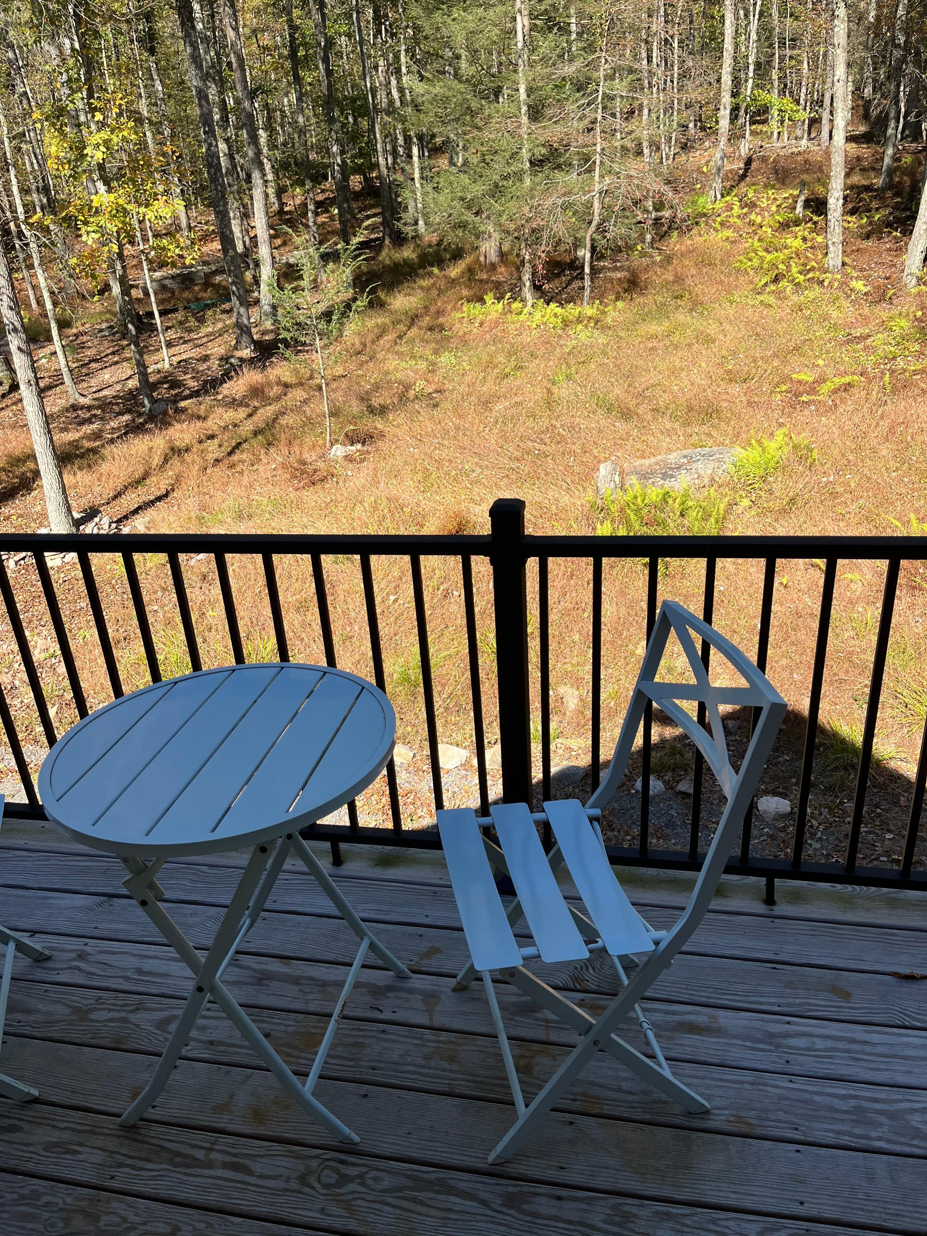Everything was wonderful, the property was nice and clean. It was surrounded by woods with no view of another property which was beautiful while watching the trees sway in the wind.
