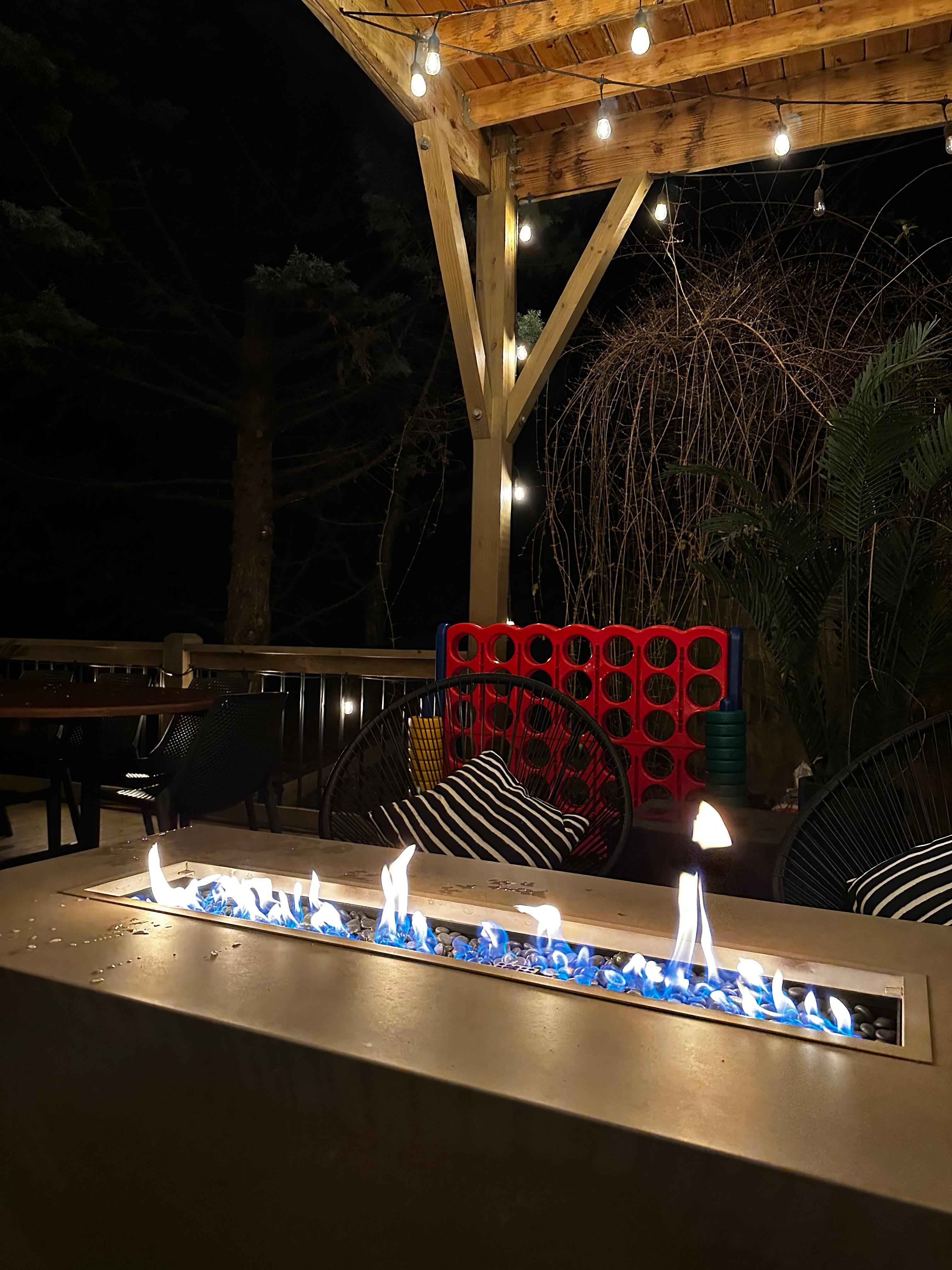 Downstairs, step out on to the large deck and breathe in that fresh mountain air while you curl up with your favorite wine or hot chocolate by the cozy gas fire pit. With ample space, you can entertain your guests in style -whether it's at the large outdoor table that comfortably fits ten people or around the fire pit. Enjoy barbecue meals cooked to perfection on the gas grill!