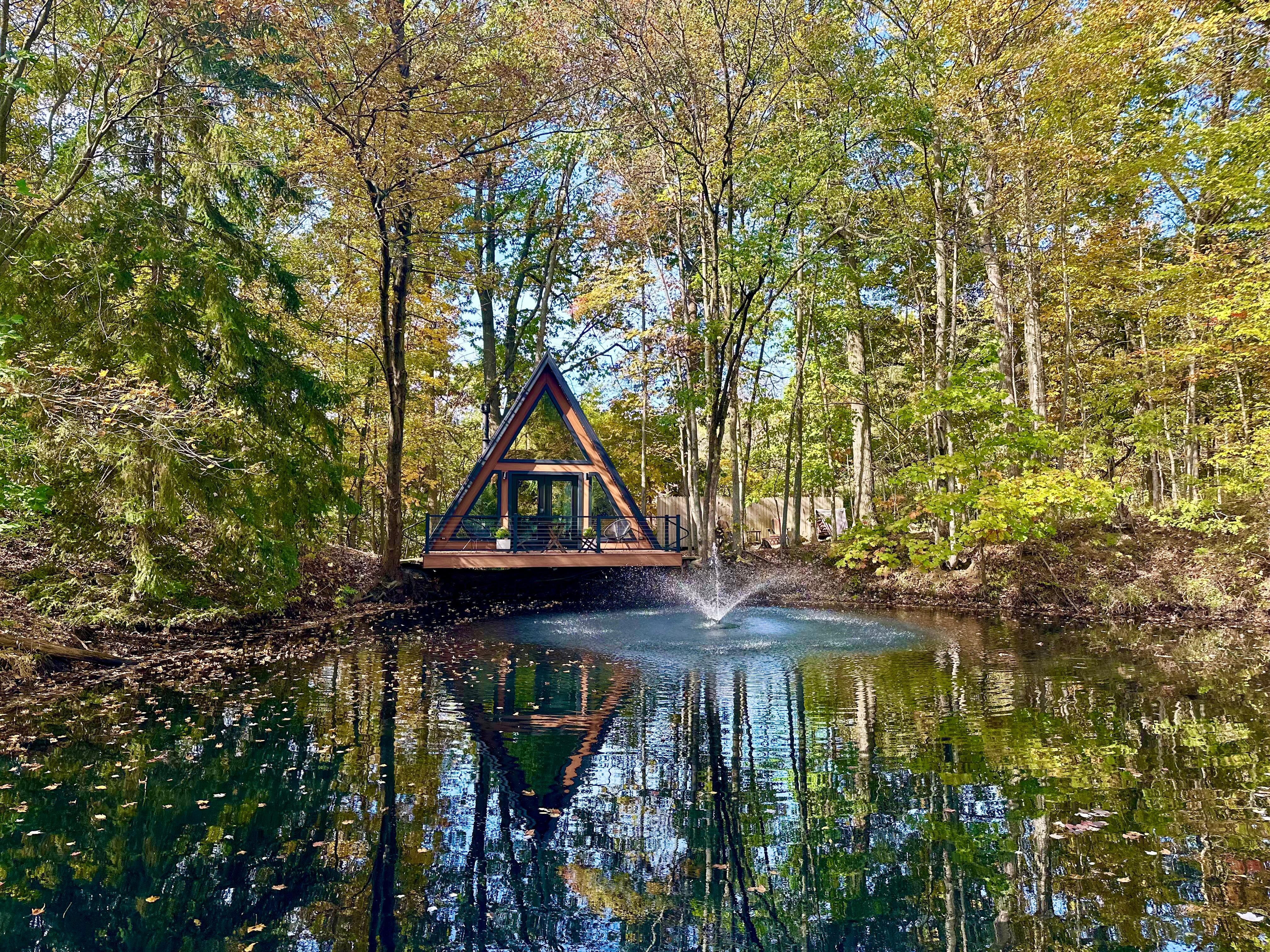 Escape to this romantic lakefront A-frame, perfect for a cozy couples’