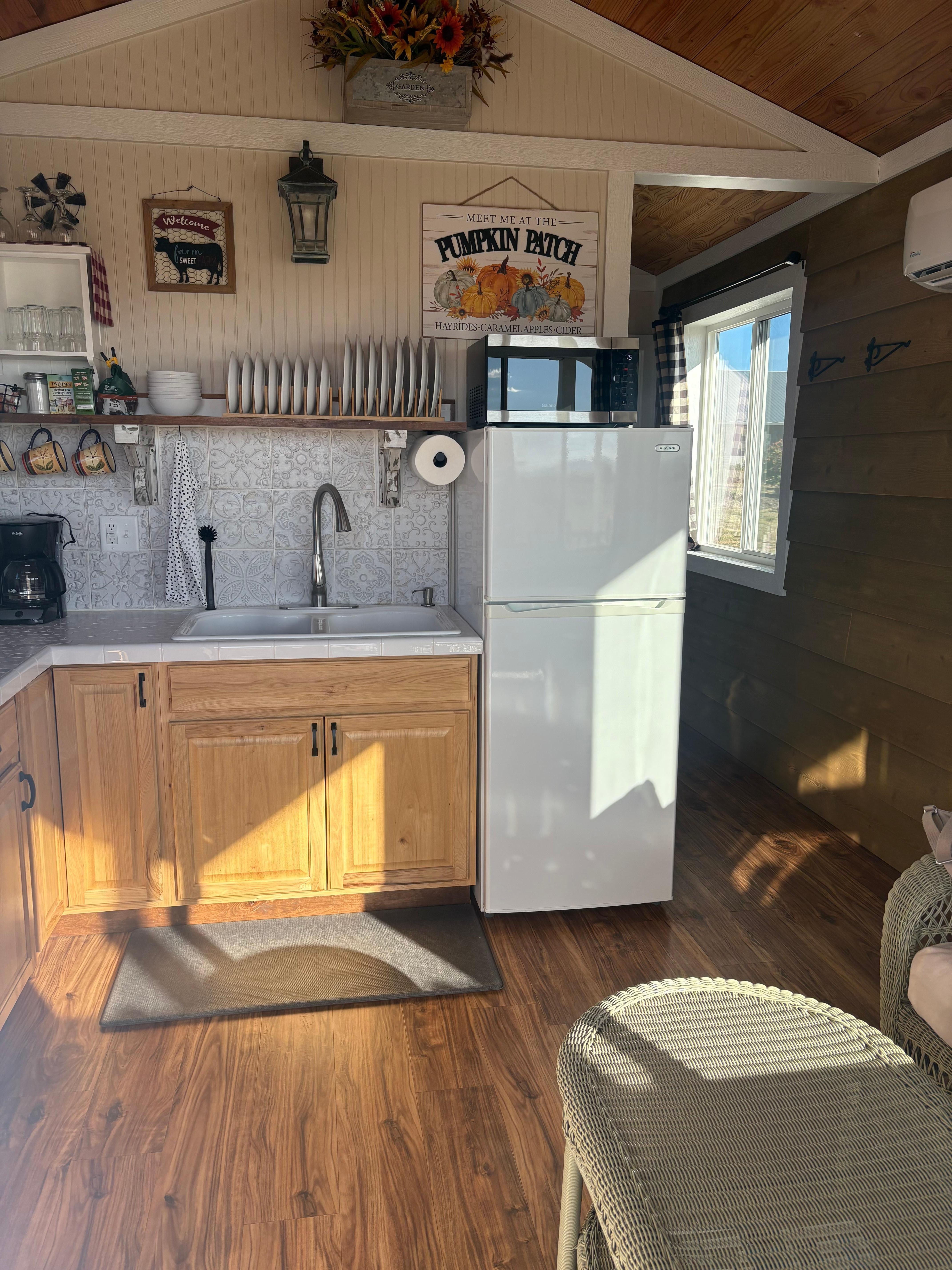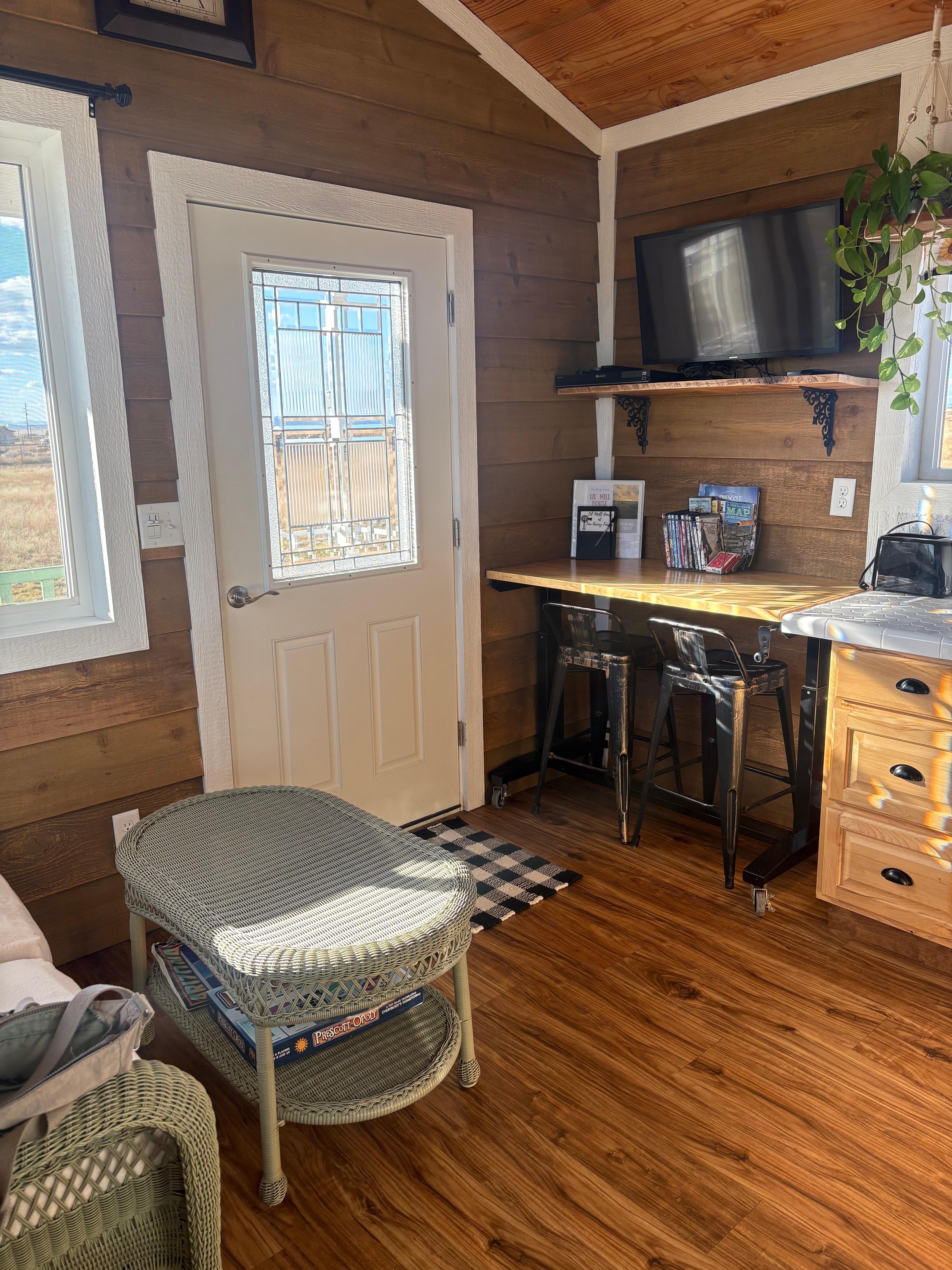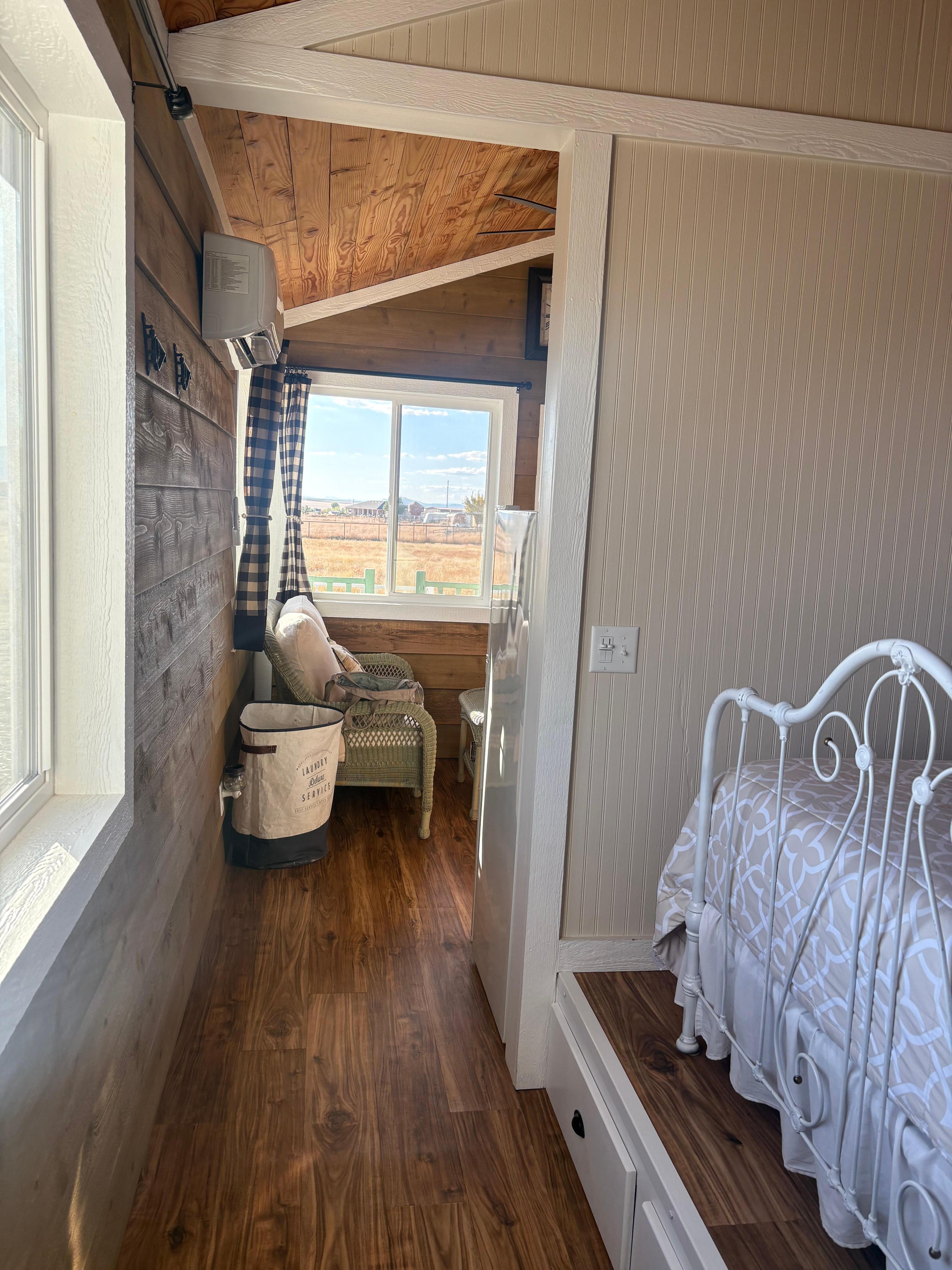 This 288 sq ft tiny house feels big as it has a functional kitchen with appliances ,full bathroom, queen bed, storage, Wi-Fi/TV, mini split, it’s quite, private and porch facing West for beautiful sunsets. Next to the house is a fire pit and windmill for summer cookouts and gazing at the stars. There are big gardens where you can come pick some fresh seasonal produce and get farm fresh eggs. We are centrally located to great hiking and biking trails, a lake, and historical places like downtown Prescott or Jerome the haunted mining town. We are 8 miles out of Prescott Valley and 20 miles from downtown Prescott. If you are looking for a quite getaway and a taste of the farm you will enjoy our little place.