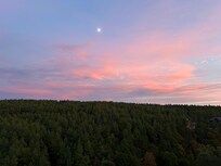 Step inside to soaring ceilings, an airy open floorplan, and walls of windows showcasing sweeping mountain and forest views.