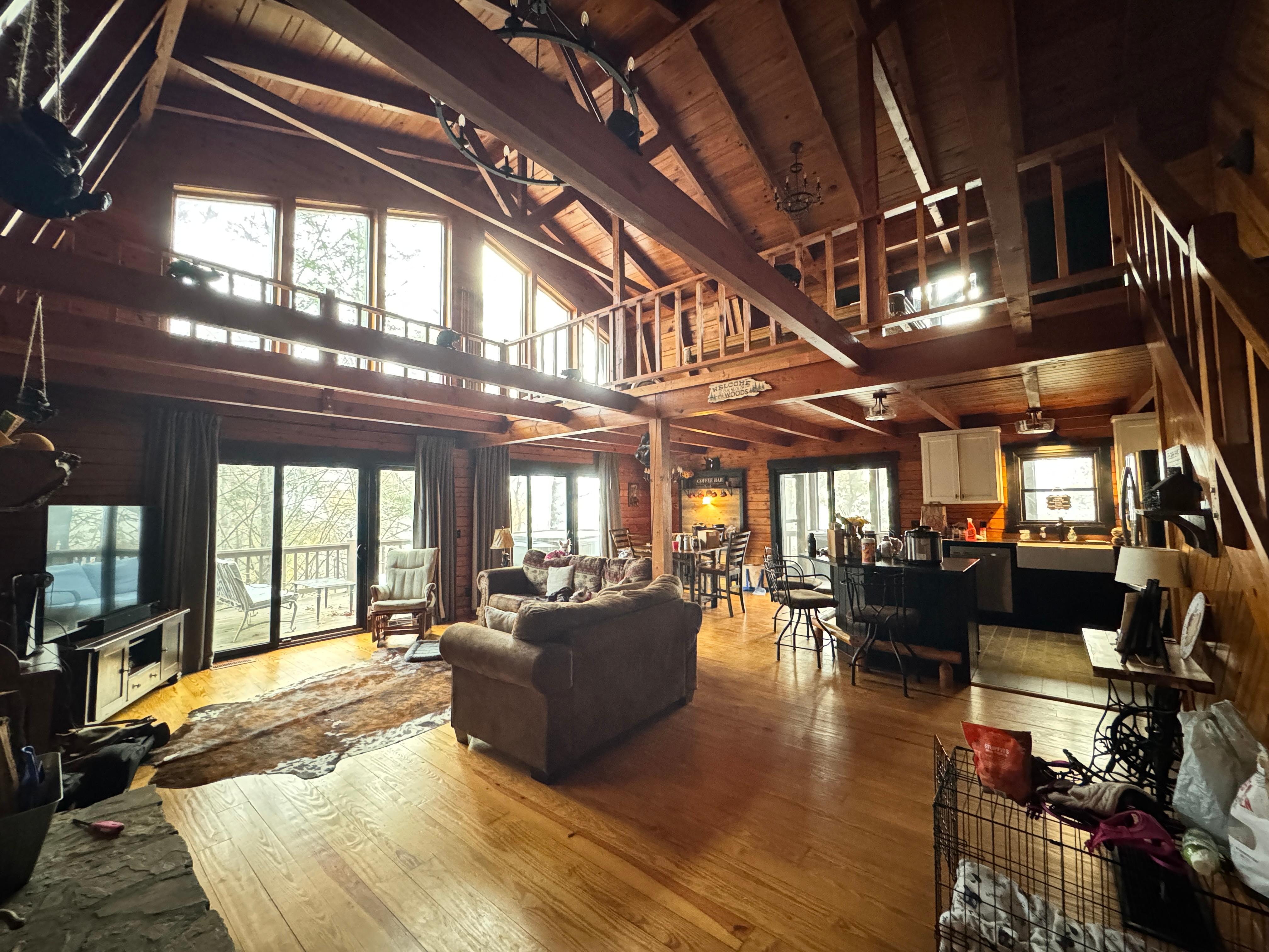 Genuine log cabin. Enjoy this three bedroom two bath cabin in the mountains. There is a King bedroom and a bedroom with 2 twins and a full bathroom on the main floor. The main level fireplace is perfect for chilly evenings. The master in the loft contains a King bed and a private full bath. The pool table is located in the loft and there is a screened porch on both the loft and main levels. The hot tub is on the main level deck along with a seating area. There is a fire pit and a grill for your use.