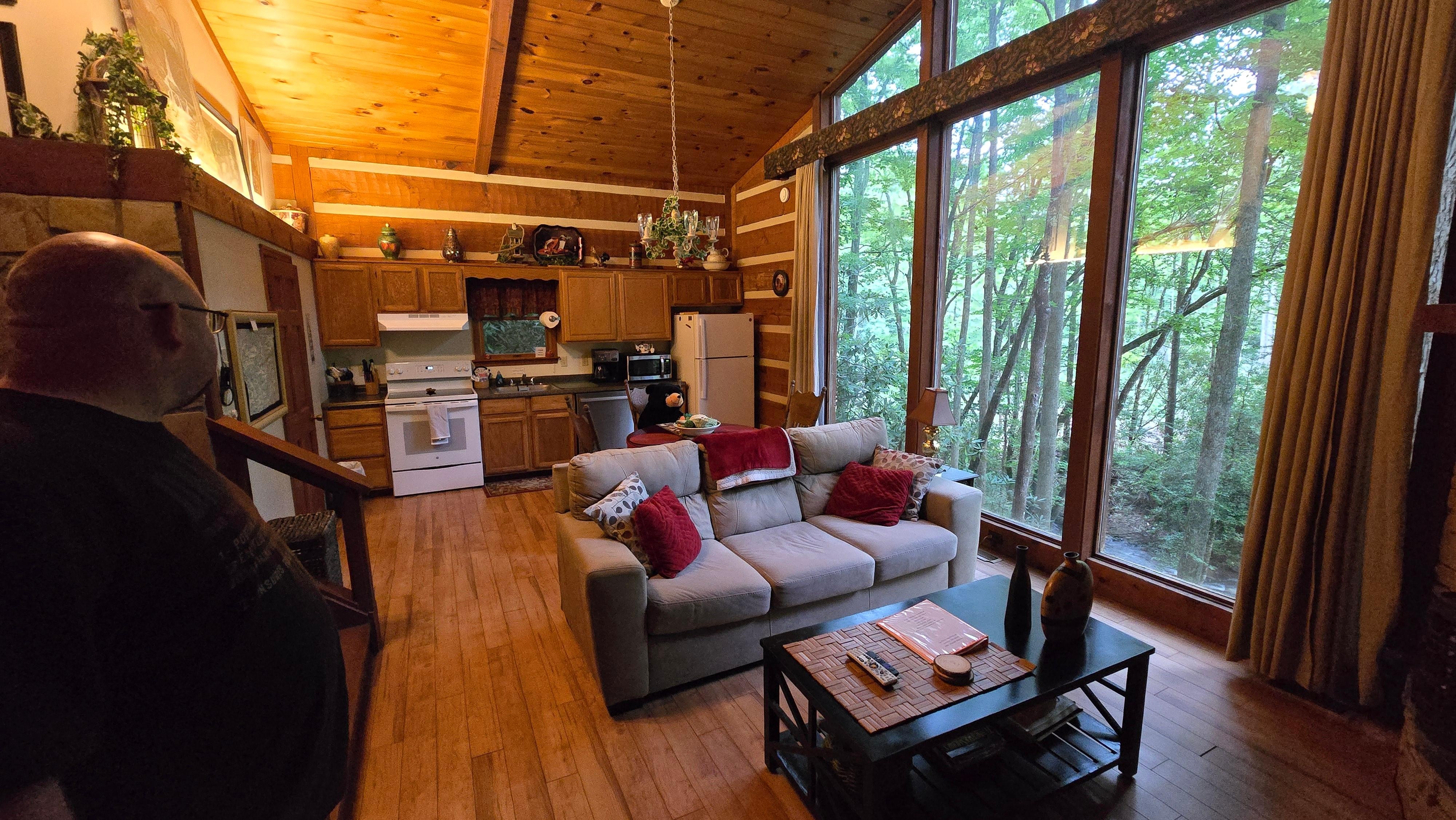 Photos are true to experience! Beautiful! Owner was kind and the cabin was quaint and peaceful. Whirlpool outside needed to be cleaned, but the atmosphere was truly inspiring!