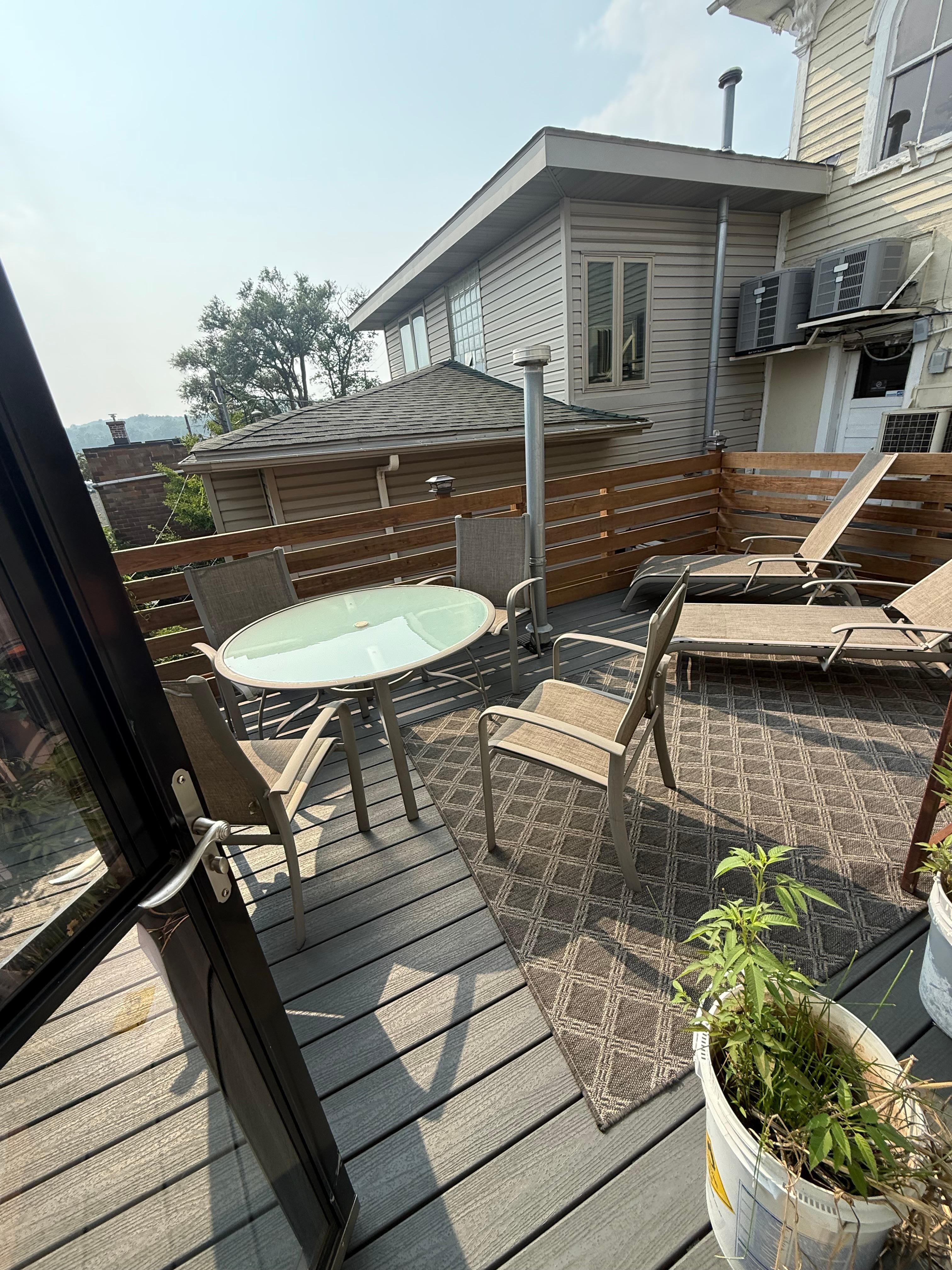 Spacious back deck to enjoy morning coffees or evening cocktails. Listen to the sounds of night time atmosphere.