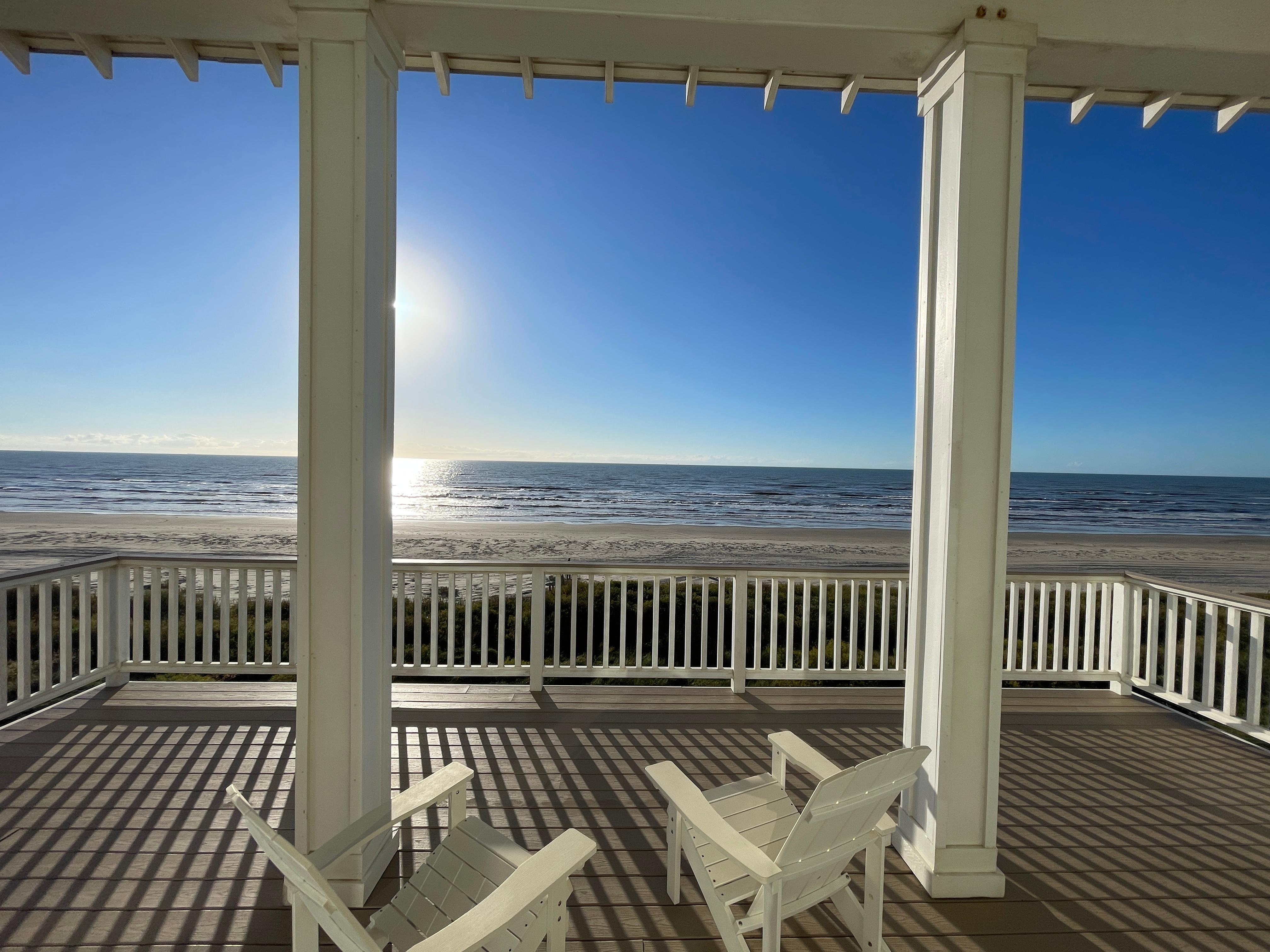 Brand new beachfront 5 bedroom/5 bath home in Galveston's premier family friendly neighborhood of Beachside Village. Enjoy 180 degree ocean views from the second or third stories of inside this climate controlled oasis. Soak in the sun with very close beach walkover access.