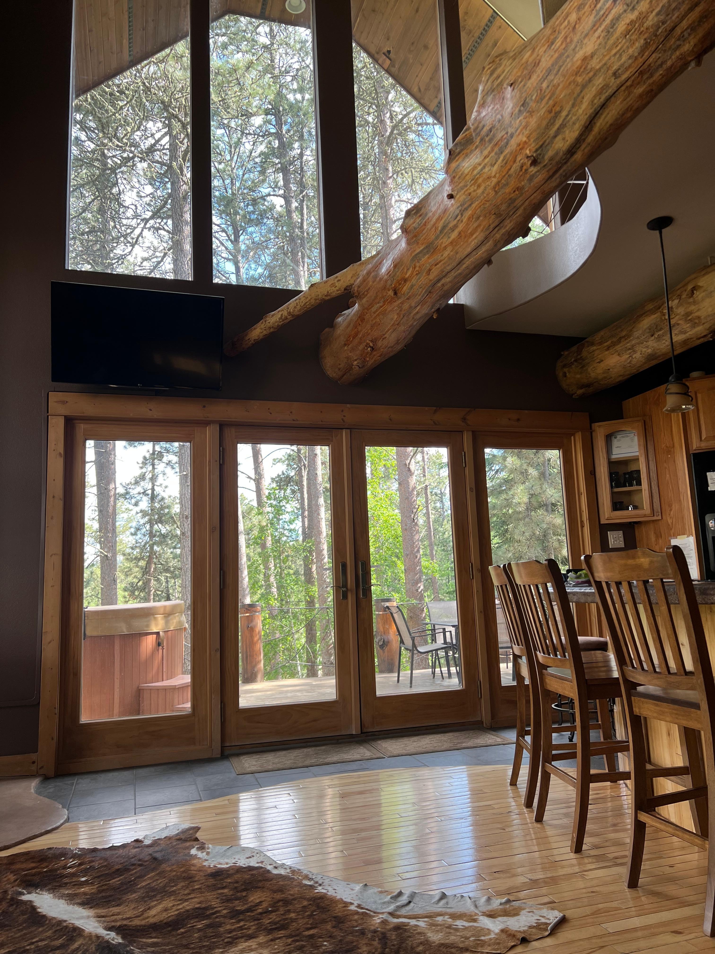 Beautiful cabin, loved the architectural elements. Great location, and the driveway makes for fun sledding for the kids. Great communication, and the resort across the road was a pleasant surprise.