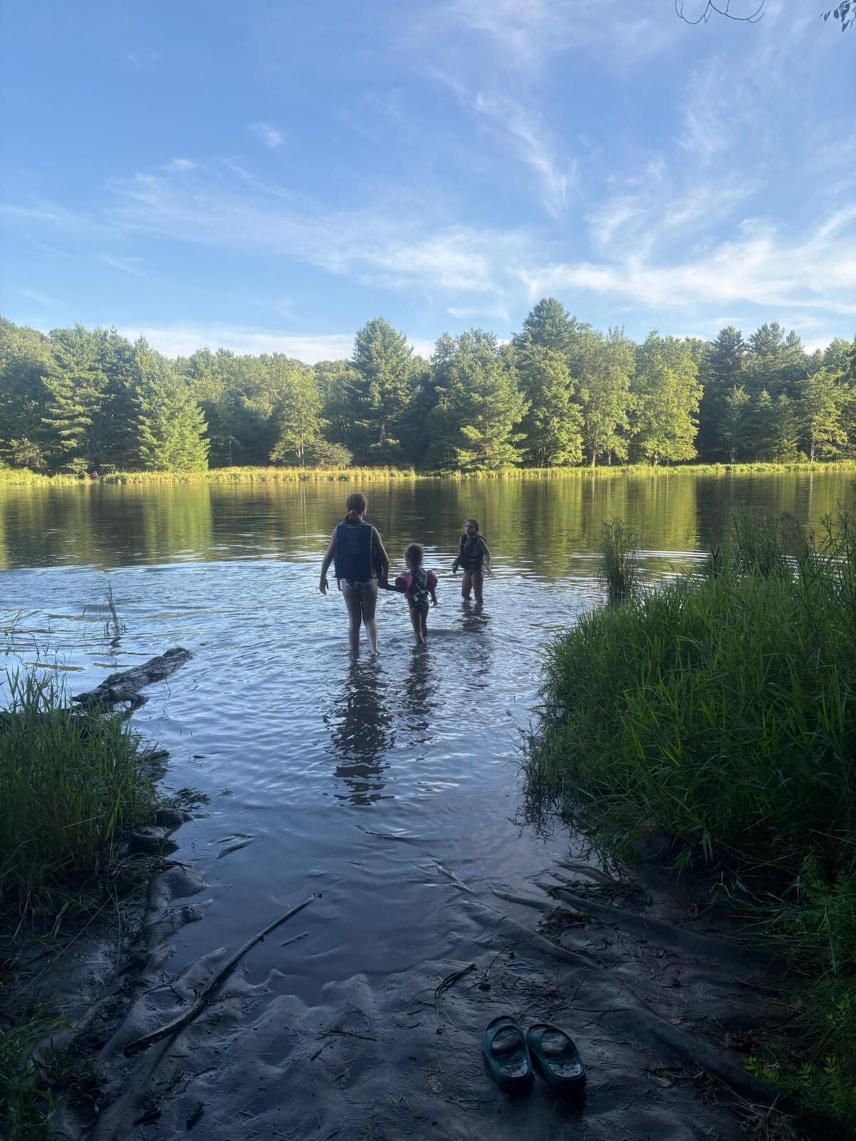 We provide a grill, firewood, outdoor games, snowshoes for cold stays, and a canoe with life vests for warm stays.