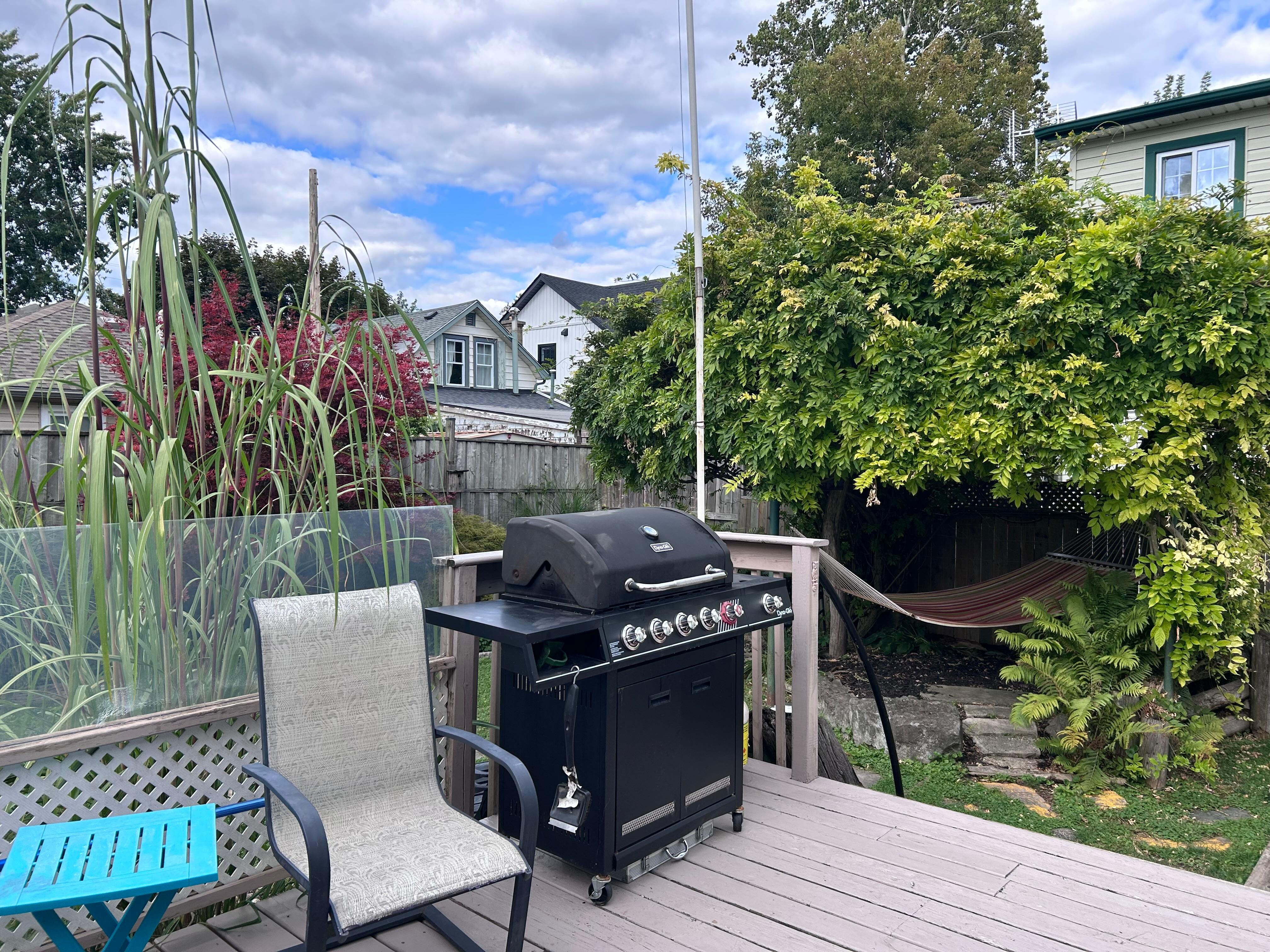 Beautifully landscaped backyard with a Wisteria covered pergola, pond (with waterfall) and unheated above ground pool. The wrap around deck provides lots of space to lounge and barbecue beside the pool. 3 comfortable rooms, with a nice upstairs lounge. 49" smart TV to entertain the kids.