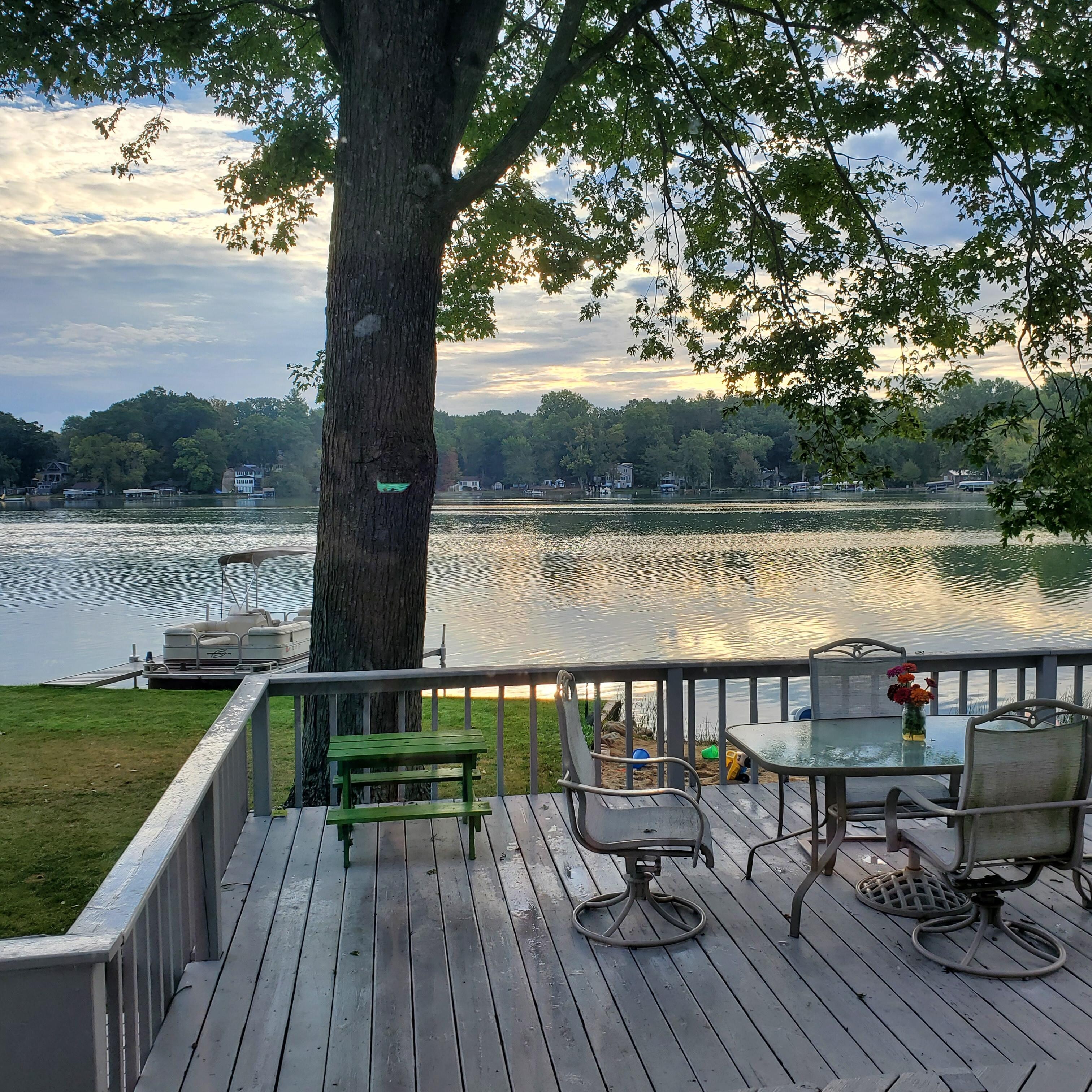 This has great outdoor spaces with deck and dock, however the whole house is very rustic, and needs updating-70 paneling, furniture, kitchen, etc. The bathroom facilities are difficult, with one tiny shower-no tub and the second “bathroom” is more a utility room with a toilet- and utility sink - the kitchen was well stocked. The beds only had a fitted sheet, no top sheet but the beds themselves were very comfortable, but the walls are incredibly thin. We would have happily rented the pontoon but it was only offered to rent paying for arrival day (check in time is 4pm -we flew in, arrived at 8pm- didn’t understand why we would be charged for a day of boat rental when we weren’t even there? But the only way it is rented even after mentioning. The lake has a lot of activity including loud zooming jet skis and boats speeding around with skiers with loud music- more of a party atmosphere / I’m all for a good time but it was disruptive while enjoying the outdoor space for meals and games and fishing with constant wake- have to pause conversations at those times but it was quiet at night. This is not a peaceful lake environment if that’s what you’re looking for. Great for pets with lots of room and neighborhood dogs. Little irritants like no hand soap in the kitchen and bathrooms, one roll of paper towel- needed to buy basic household things just for a long weekend. All in all it was a good house with great outdoor space and an incredible tree in the backyard.